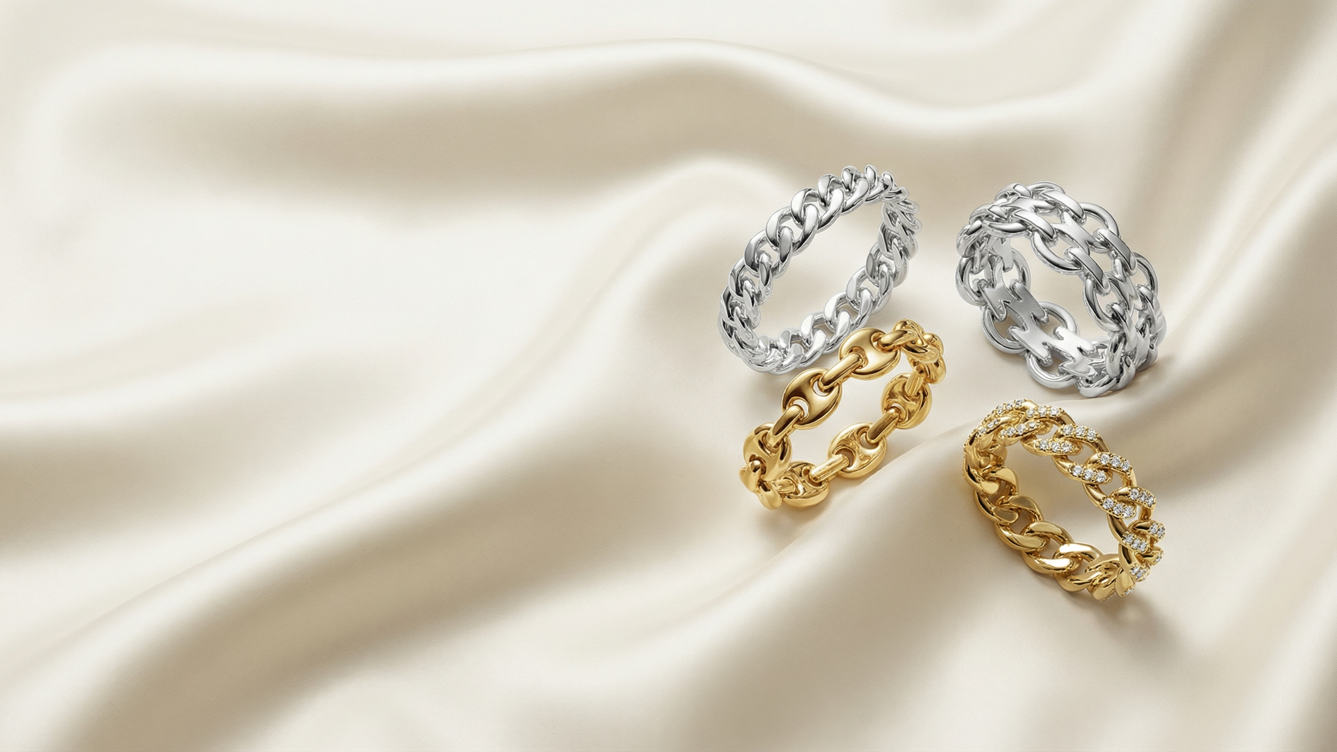 Elongated Cable Chain Ring 14K White Gold
