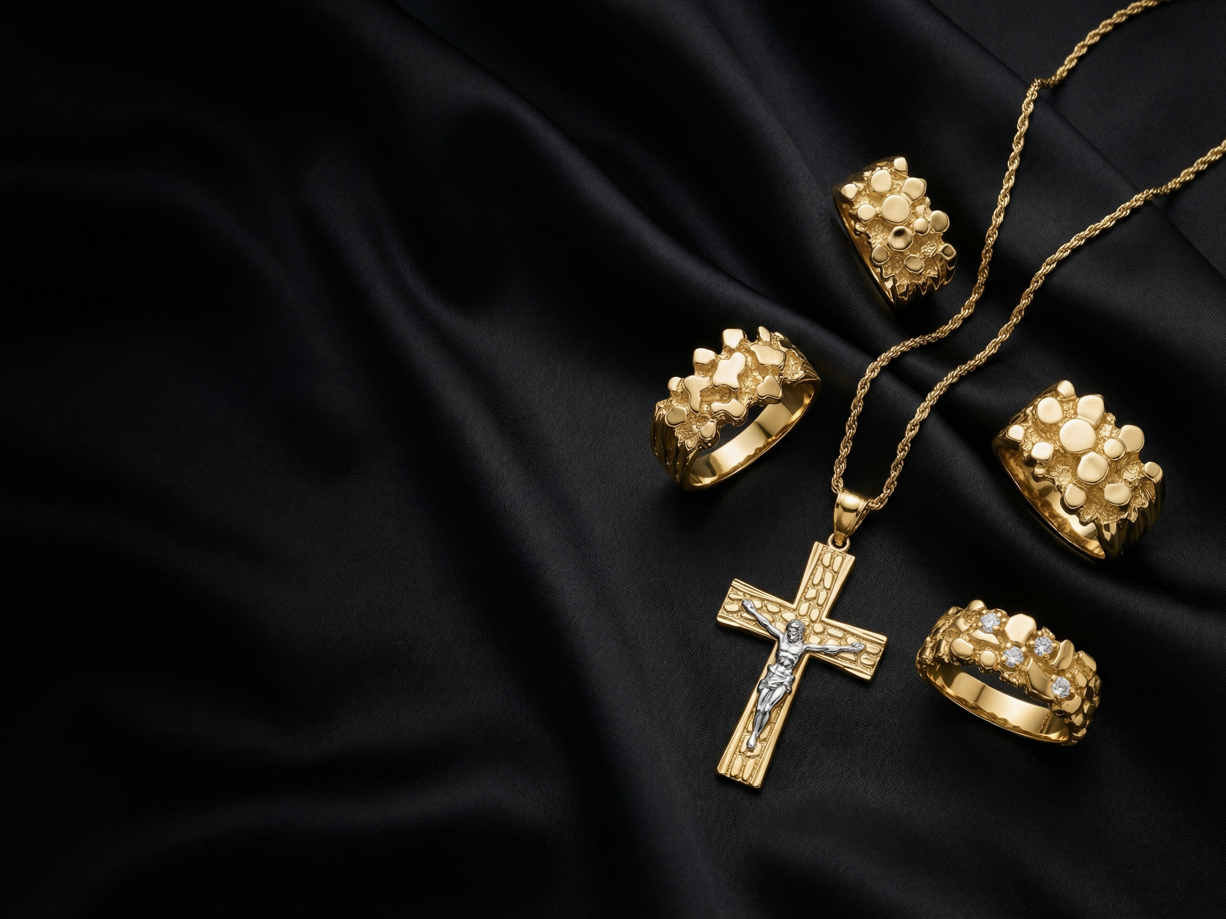 14k Gold Nugget Crucifix Pendant