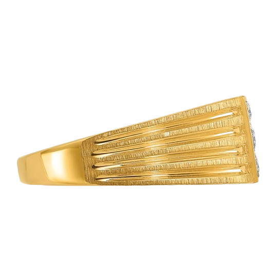 Stellen Sie sich das Gefühl vor, einen Ring zu tragen, der ohne Worte alle Blicke auf sich zieht. Das strukturierte Nugget-Muster fängt das Licht aus jedem Winkel ein, während die dezenten Diamanten für genau die richtige Brillanz sorgen. Ob Sie einen Geschäftsabschluss besiegeln, einen Meilenstein feiern oder einfach Ihren Alltagsstil aufwerten möchten – dieser Ring vermittelt das solide Gefühl und die unverwechselbare Optik eines echten Erbstücks. Gefertigt für die Ewigkeit und entworfen, um zu beeindrucken, ist er ein Ring, den Sie immer wieder gerne tragen werden.
