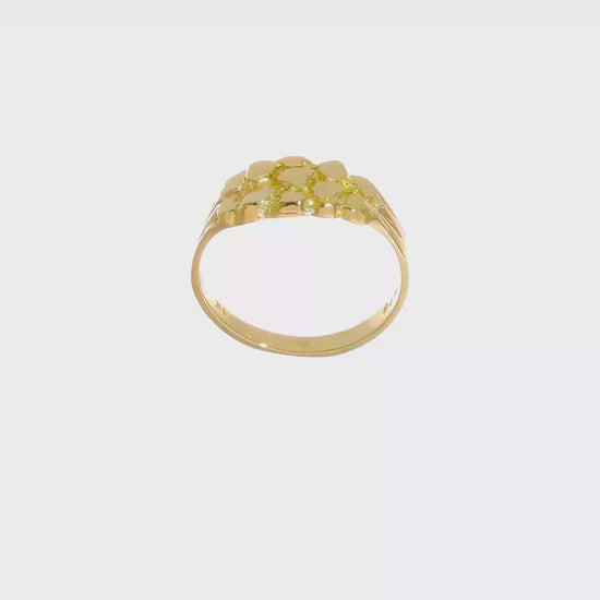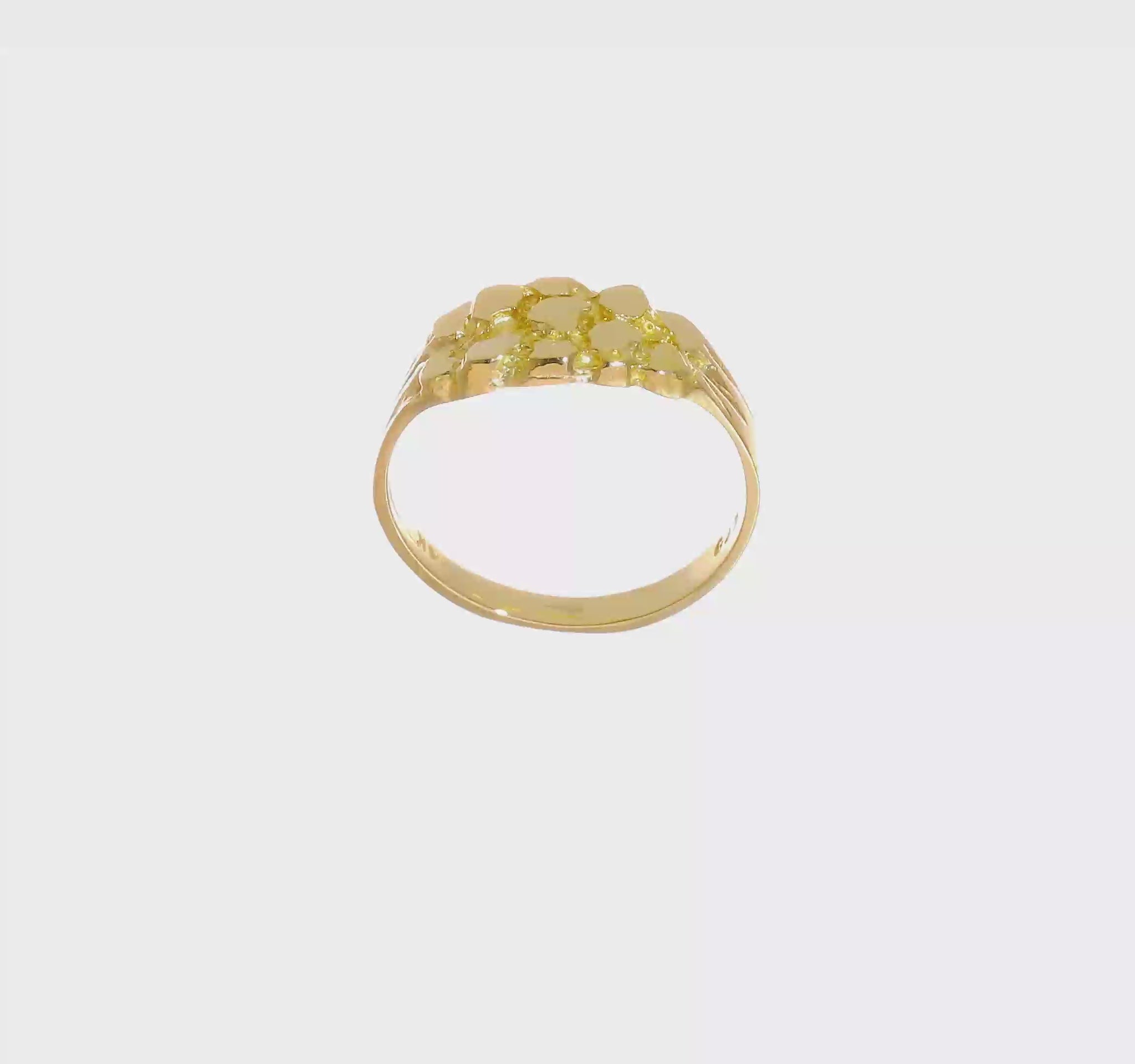 Dieser Nugget-Ring verleiht jedem Look Wärme und Charakter. Die strukturierte Oberfläche sorgt für eine subtile Tiefe, während die massive Goldkonstruktion dafür sorgt, dass dieses Schmuckstück jahrelang Freude bereitet. Ob solo als Blickfang oder kombiniert mit anderen Lieblingsstücken – dieser Ring wird Teil Ihrer persönlichen Geschichte.