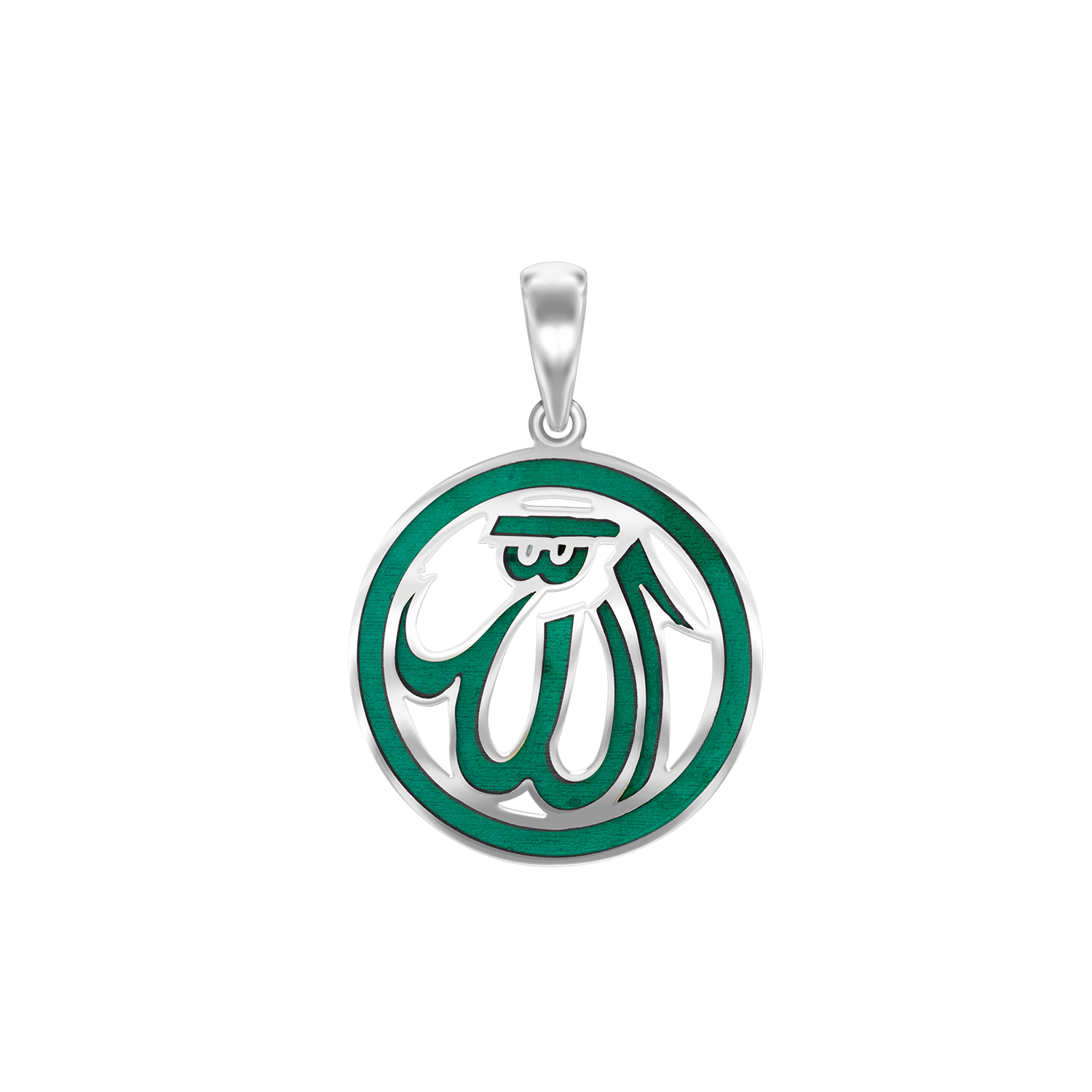 Allah-Anhänger mit grüner Emaille aus Sterlingsilber