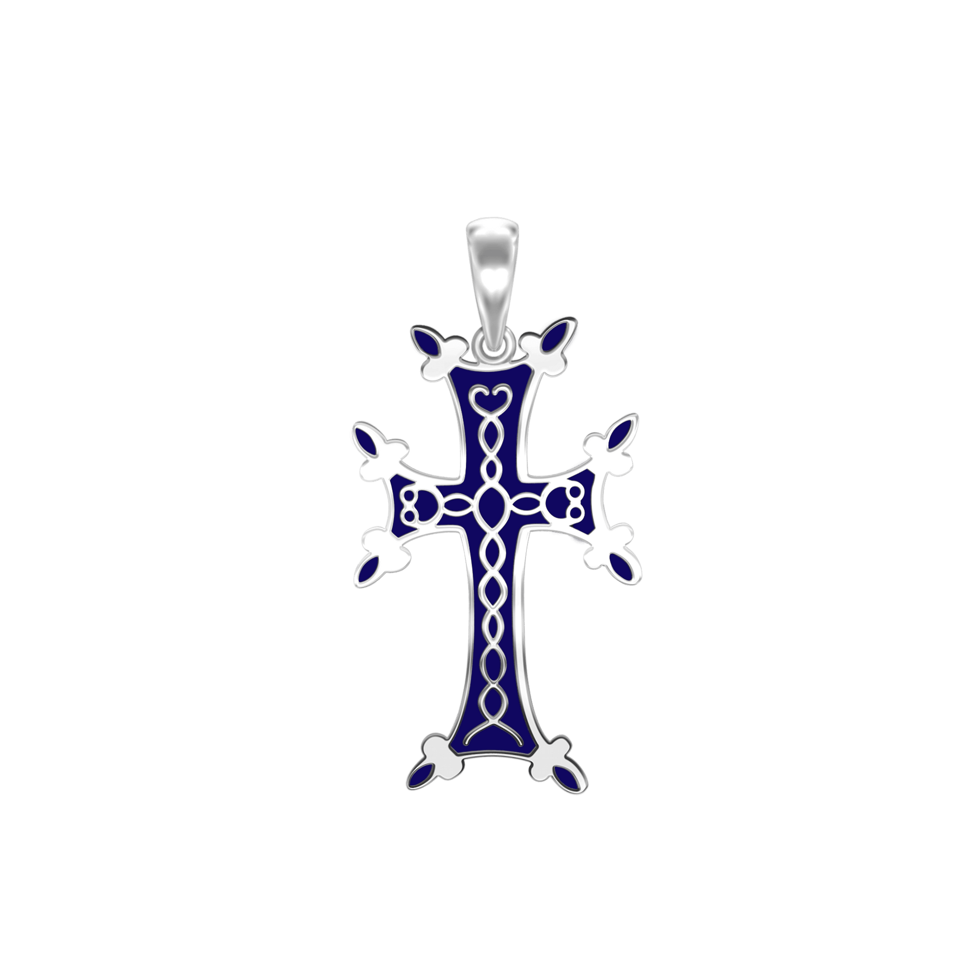 Armenisches Kreuz-Anhänger mit dunkelblauer Emaille aus Sterlingsilber