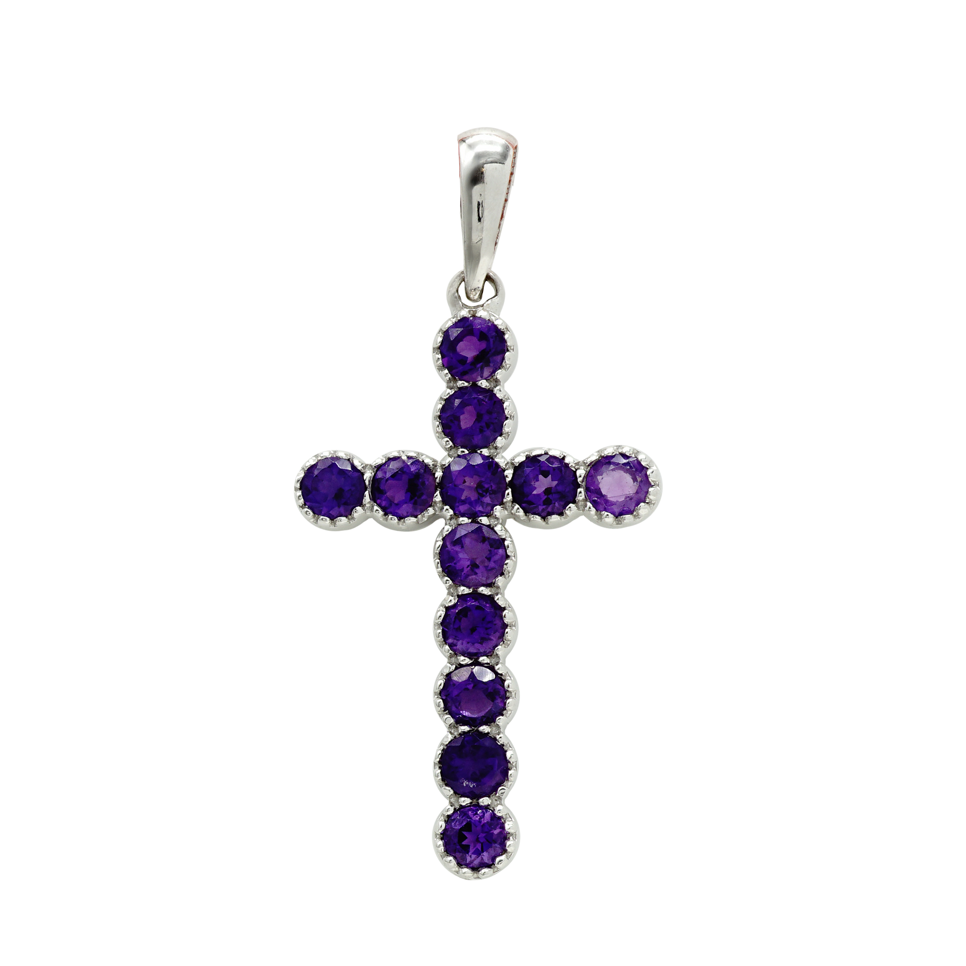 Klassischer Kreuzanhänger mit Amethysten in 14-karätigem Weißgold, gefasst in einer Lünette