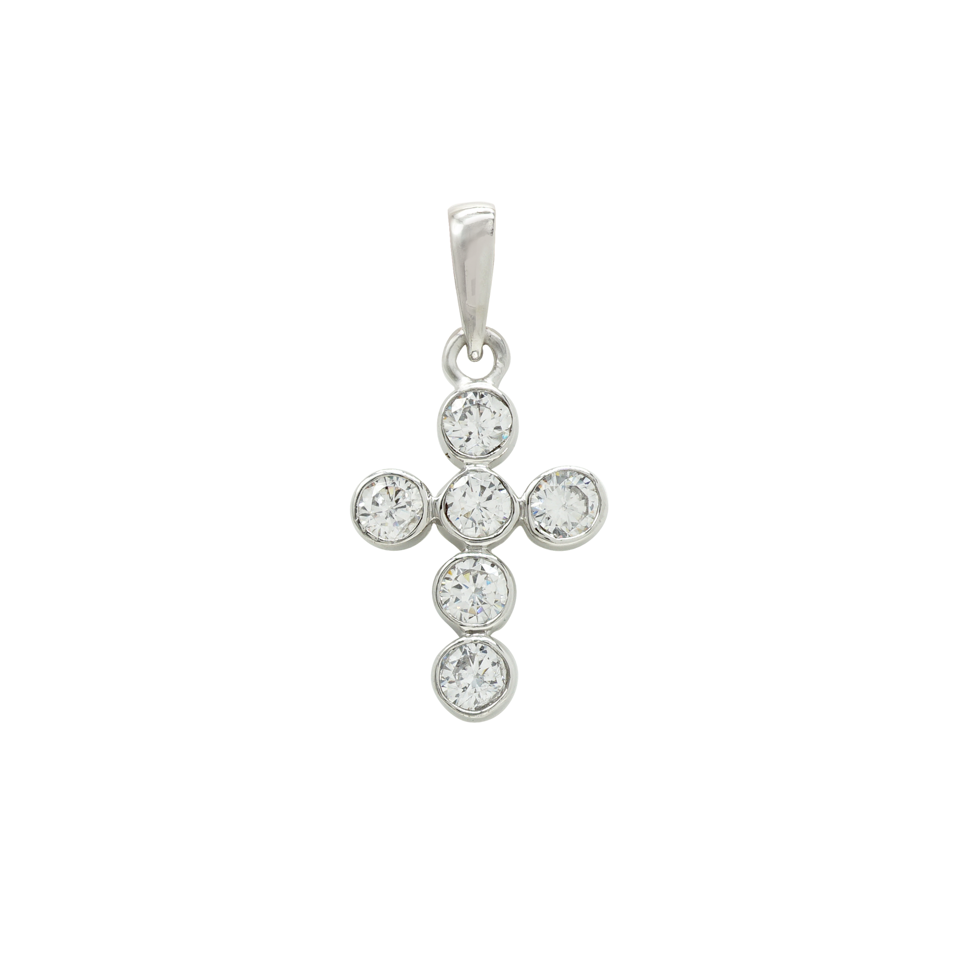 Klassischer Kreuzanhänger mit Diamanten in 14-karätigem Weißgold, gefasst in einer Lünette