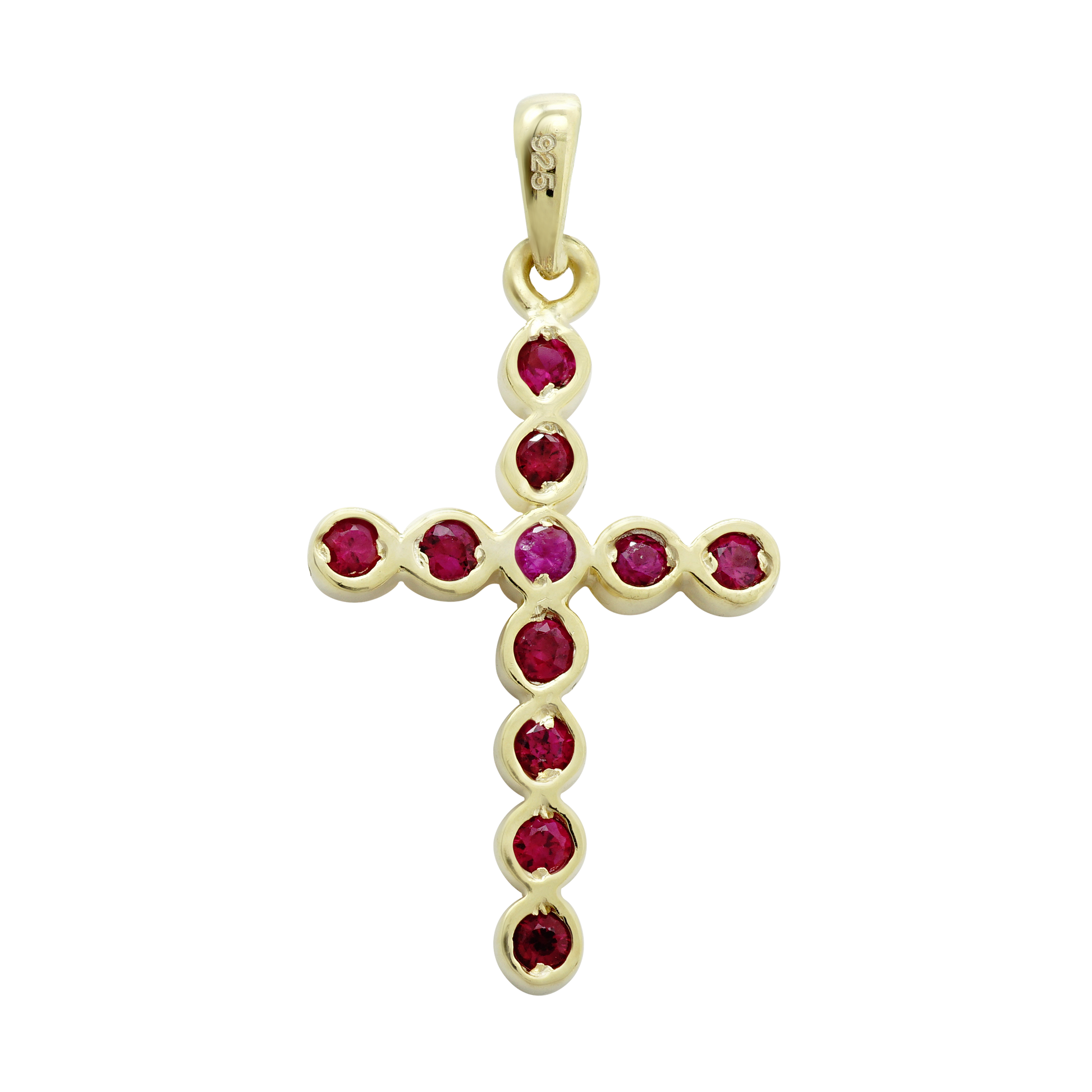 Kreuzanhänger mit Rubinen in Zargenfassung aus 14-karätigem Gelbgold