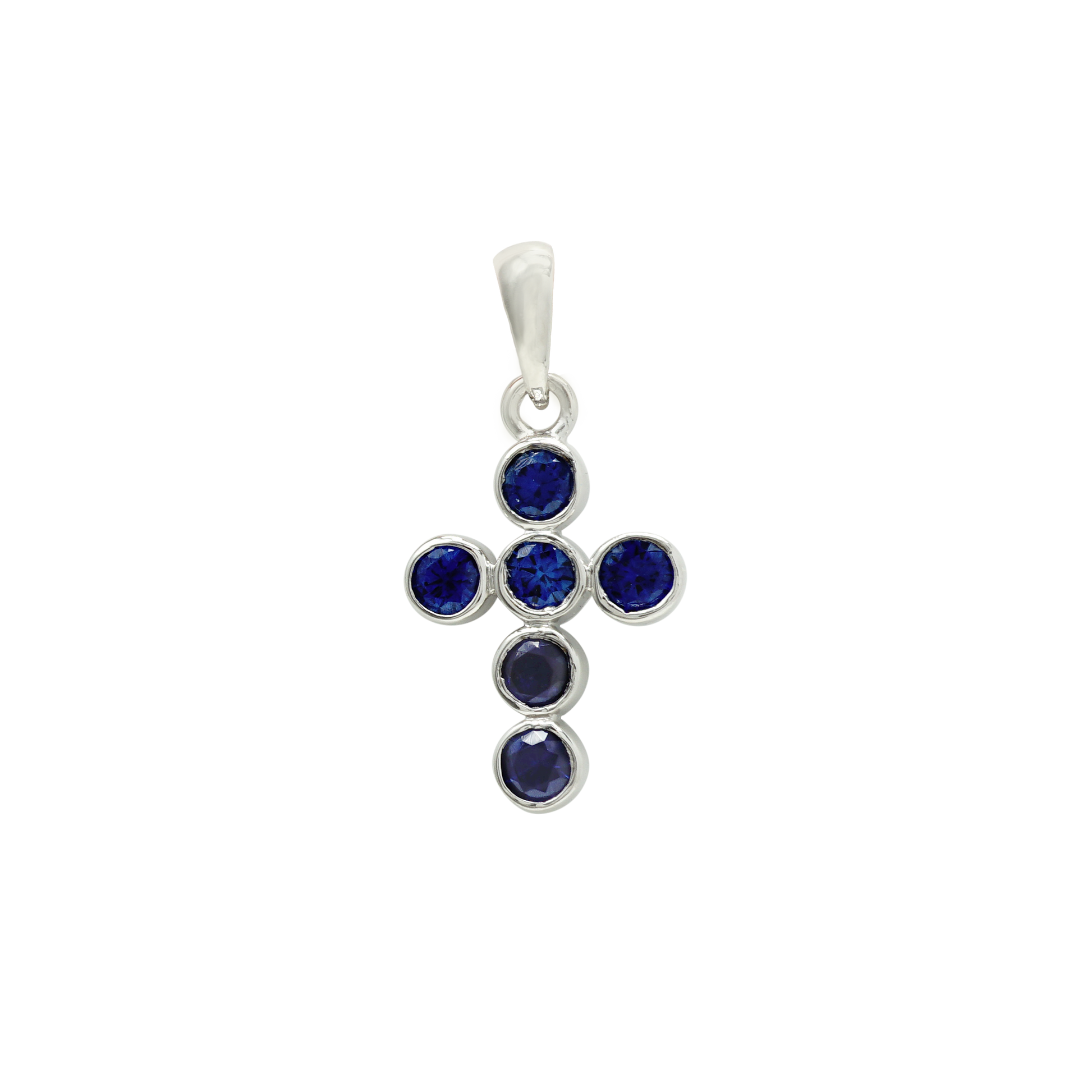 Klassischer Kreuzanhänger mit Saphiren in 14-karätigem Weißgold, gefasst in einer Lünette
