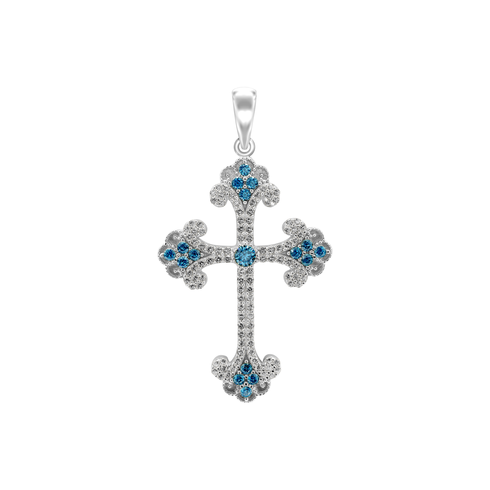 Anhänger in Form eines Knospenkreuzes mit hellblauem Zirkonia in Sterlingsilber