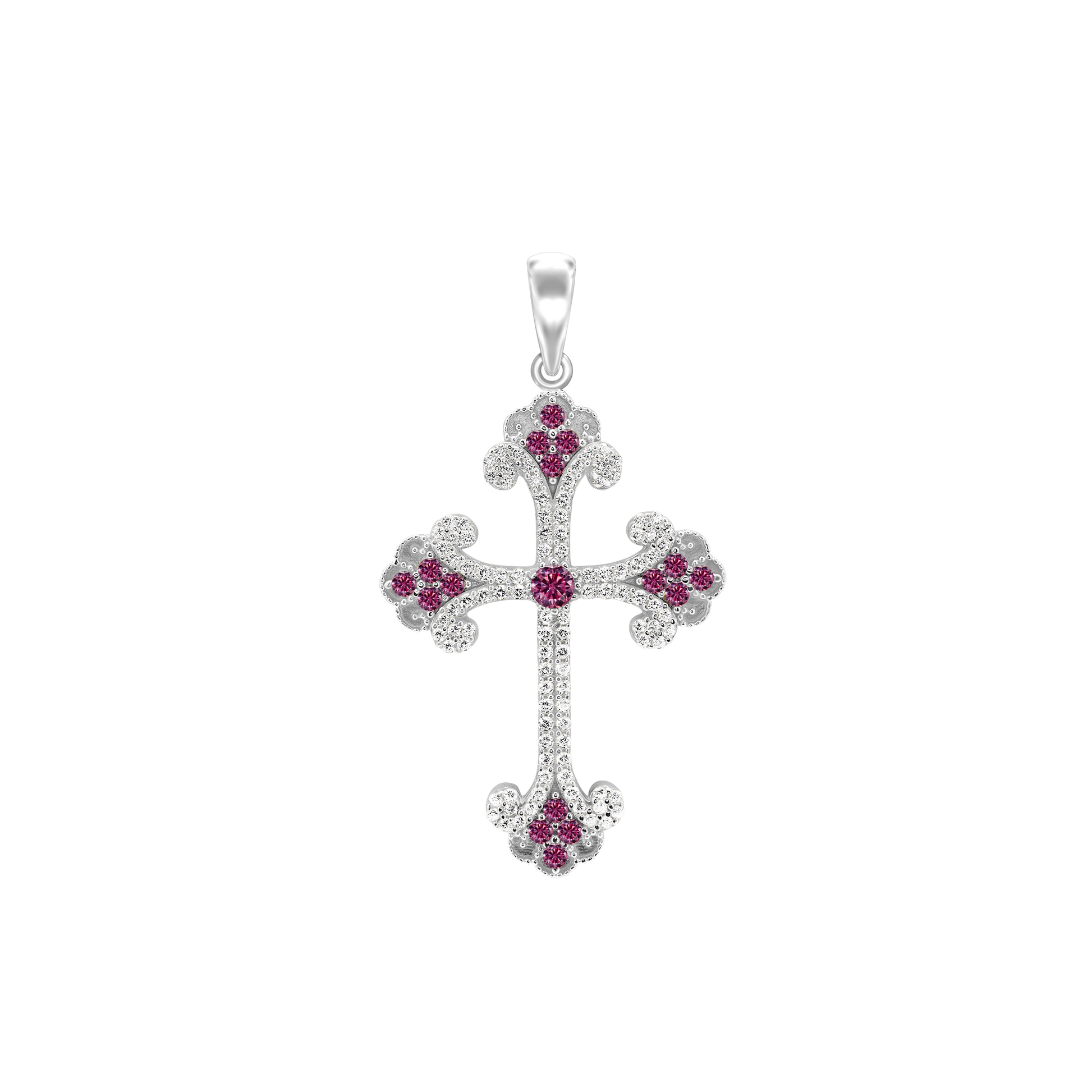 Anhänger in Form eines Knospenkreuzes mit rosa Zirkonia in Sterlingsilber