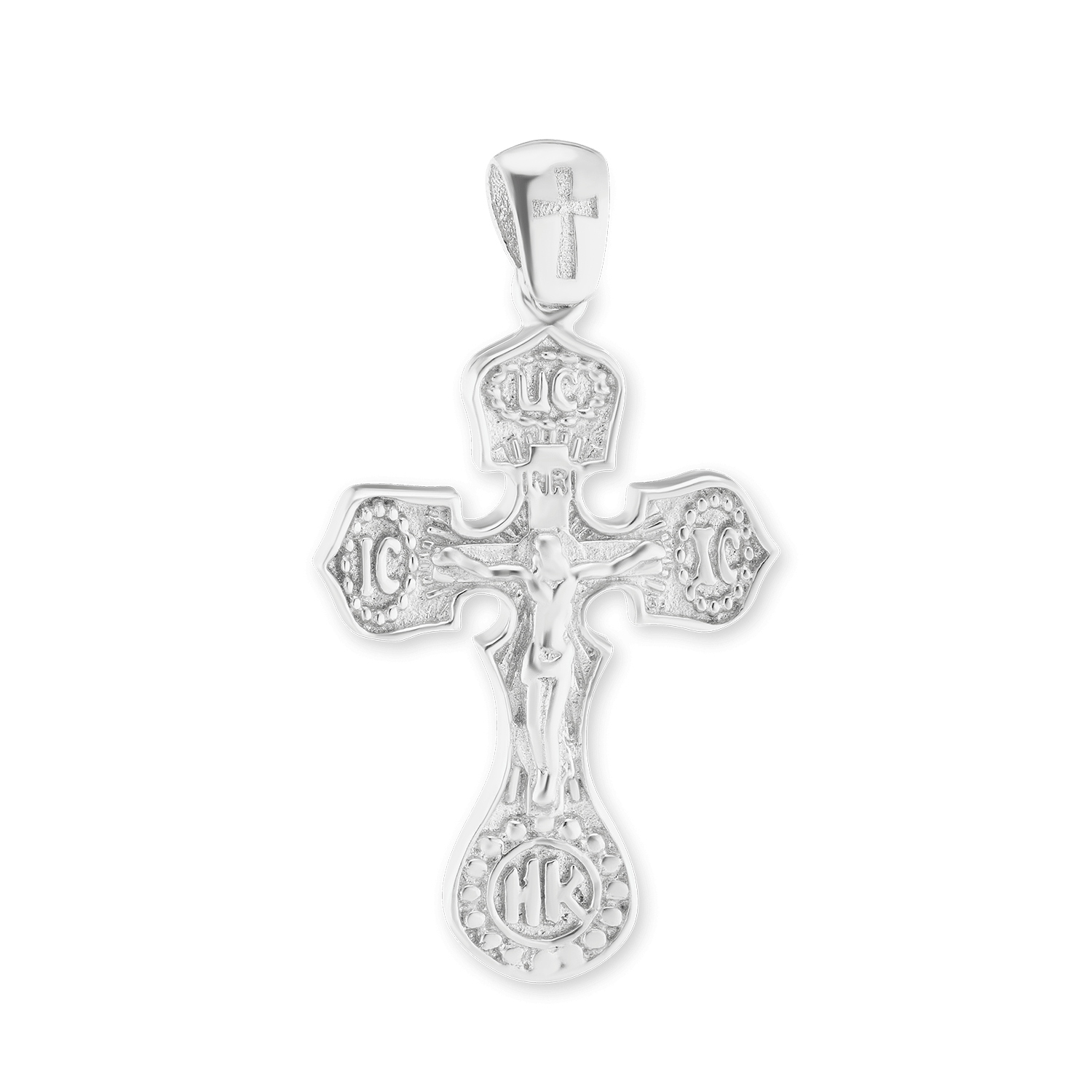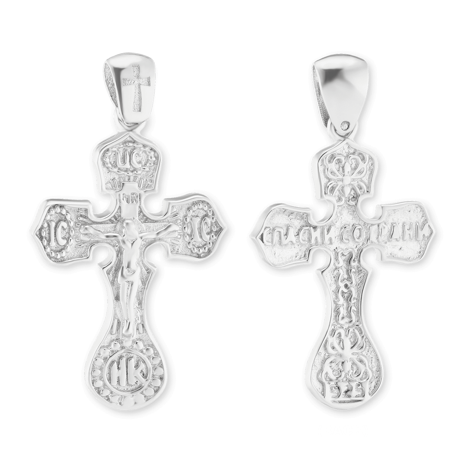 Byzantinischer doppelseitiger Kreuz- und Kruzifixanhänger aus Sterlingsilber