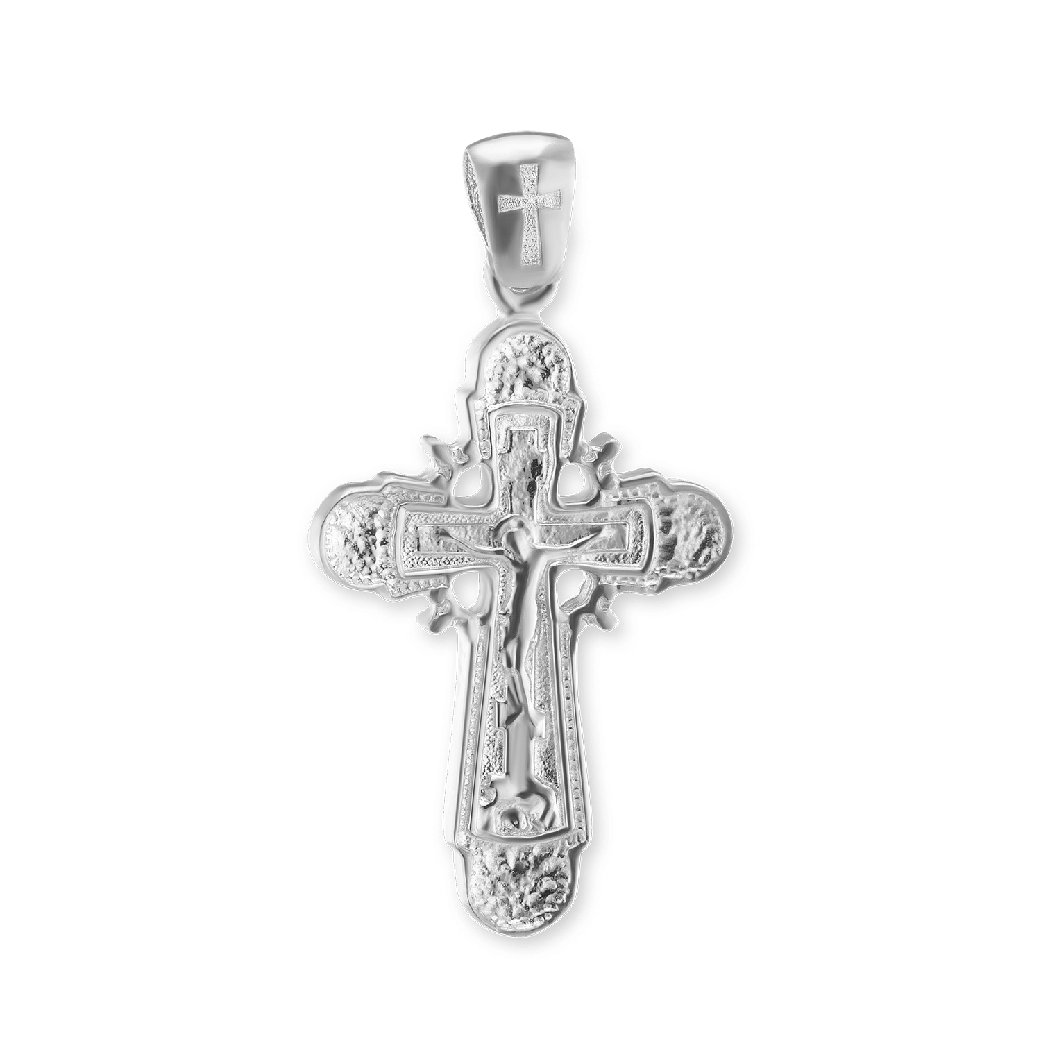 Byzantinischer doppelseitiger Kreuz- und Kruzifixanhänger aus Sterlingsilber