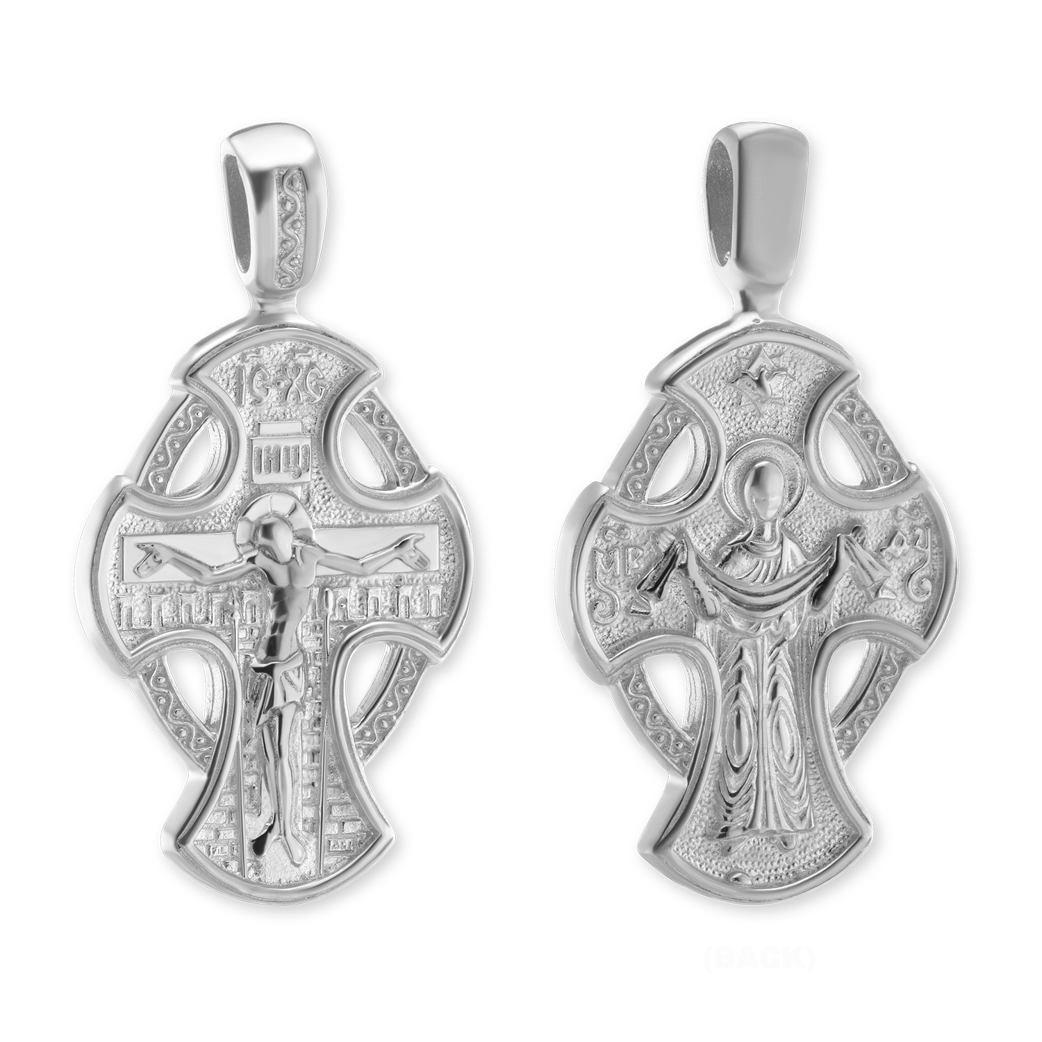 Zweifarbiger byzantinischer Doppelkreuz- und Kruzifix-Anhänger aus Sterlingsilber