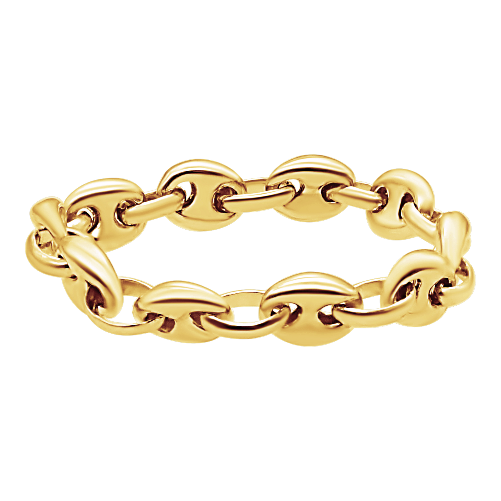 Klassischer, gewölbter Ring mit halbmassiver Gliederkette im Mariner-Stil aus 14-karätigem Gelbgold