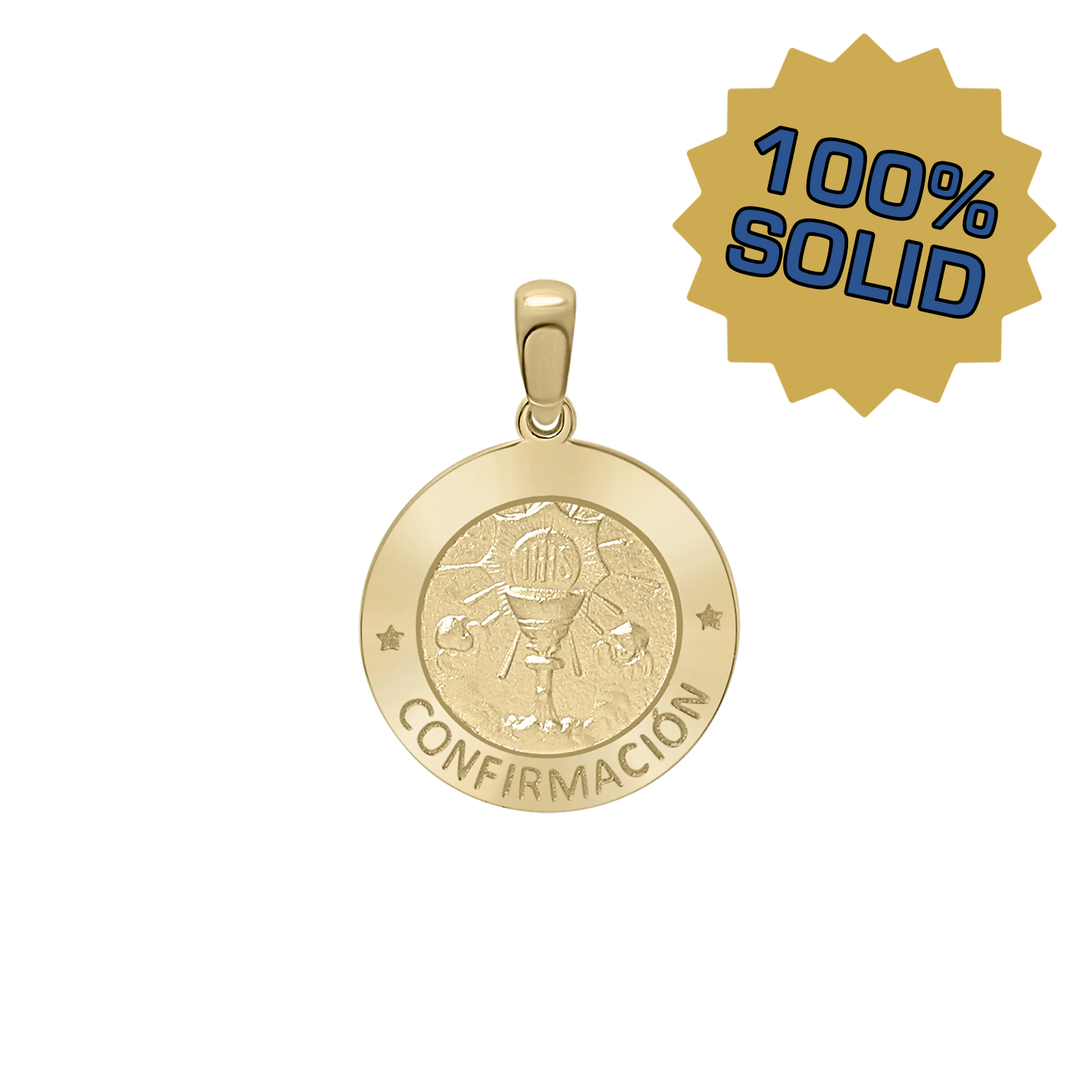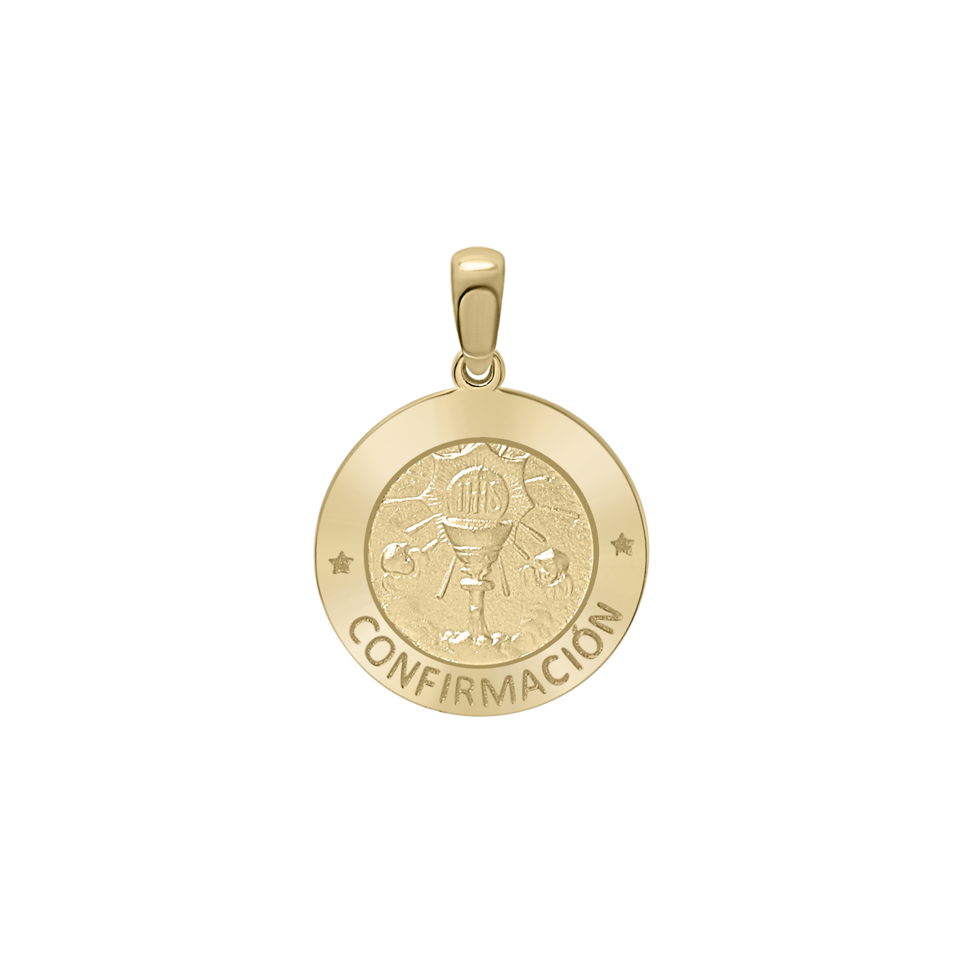 Unser Firmungsmedaillon (Confirmación) aus 14-karätigem Gelbgold ist ein kostbares katholisches Schmuckstück, das an das Sakrament der Firmung erinnert. Dieser runde Medaillonanhänger besticht durch seine detailreiche Verarbeitung und würdigt diesen heiligen Meilenstein. Er ist ein wertvolles Geschenk für Firmlinge, Firmpaten oder katholische Jugendliche.