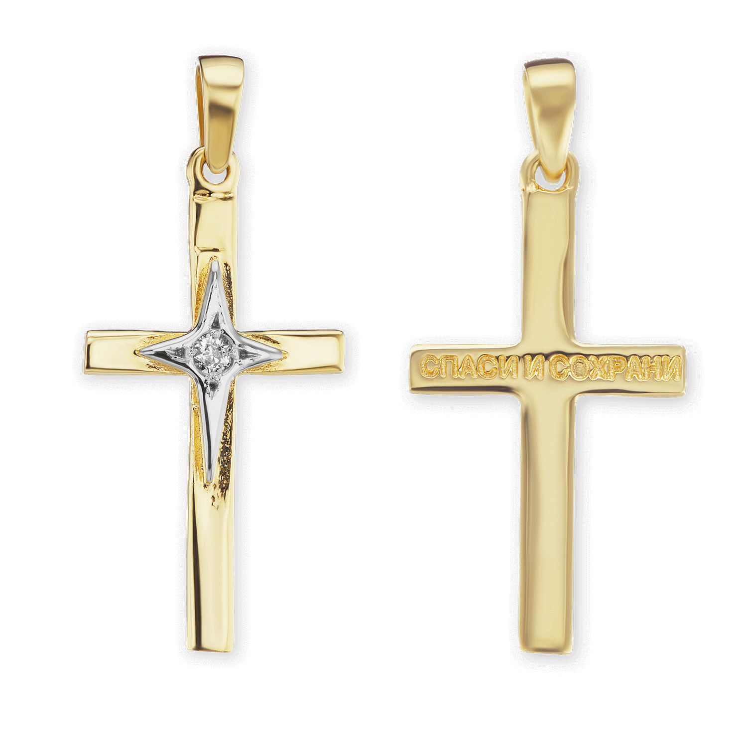 Klassischer Kreuzanhänger mit Diamantakzent in 14-karätigem Gelbgold