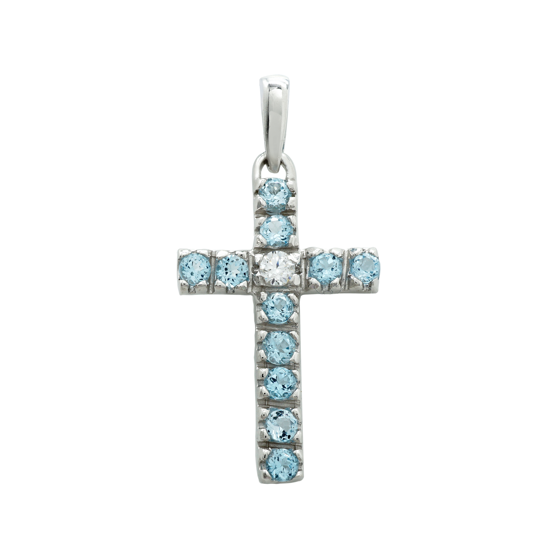 Klassischer Kreuzanhänger mit Diamanten und blauen Topasen in 14-karätigem Weißgold
