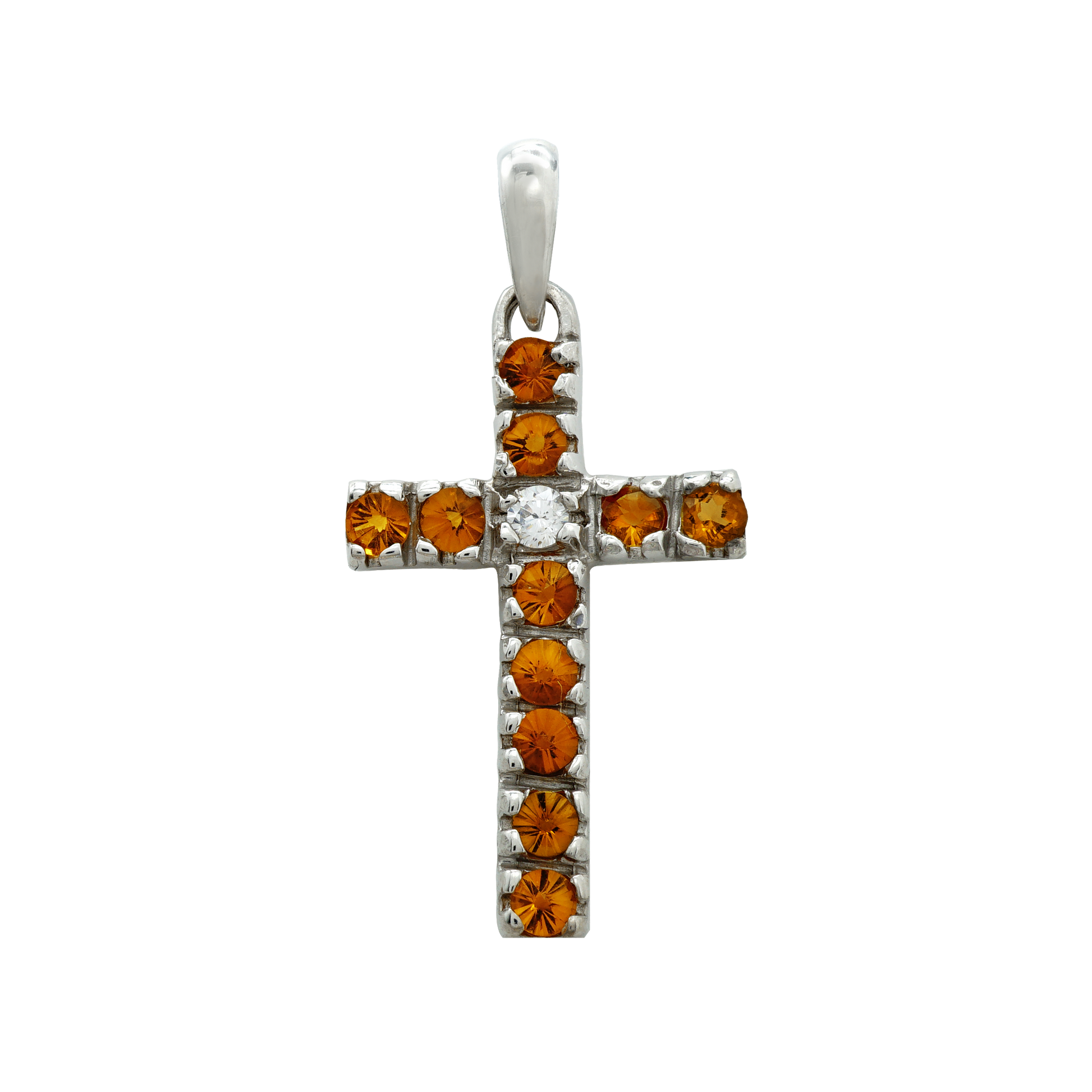 Klassischer Kreuzanhänger mit Diamanten und Citrinen in 14-karätigem Weißgold