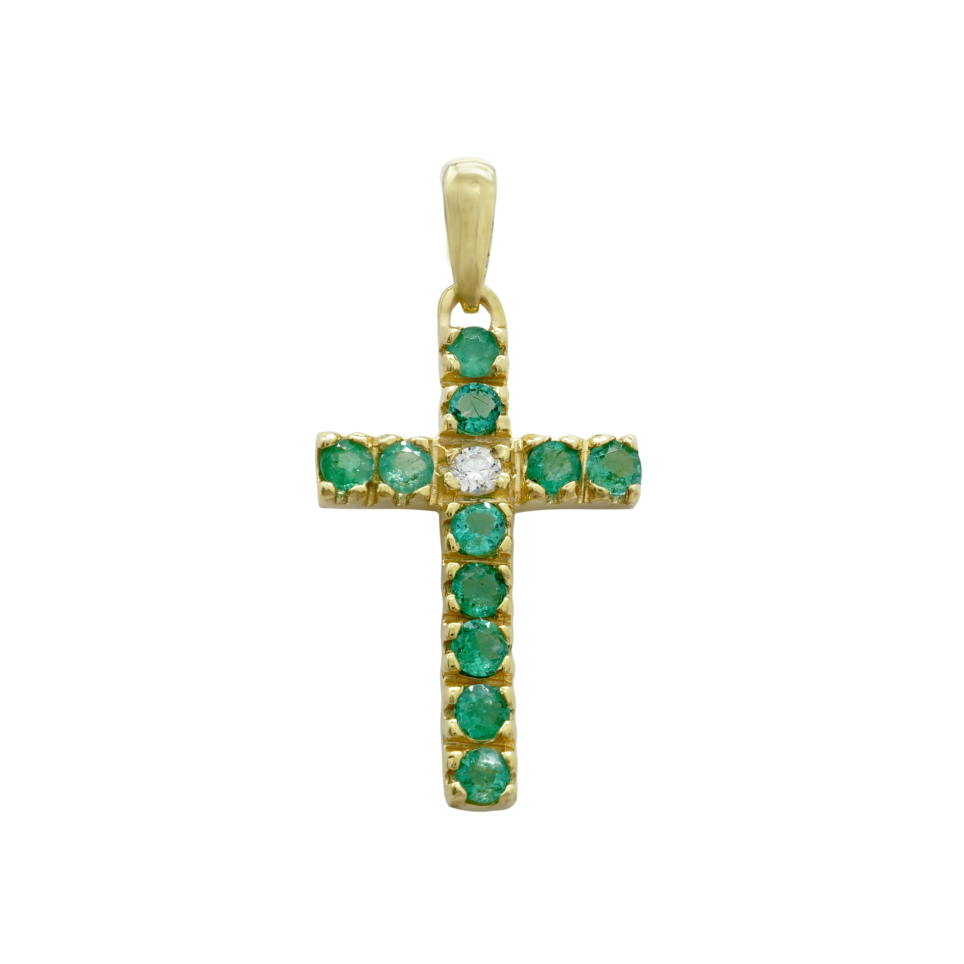 Klassischer Kreuzanhänger mit Diamanten und Smaragden in 14-karätigem Gelbgold