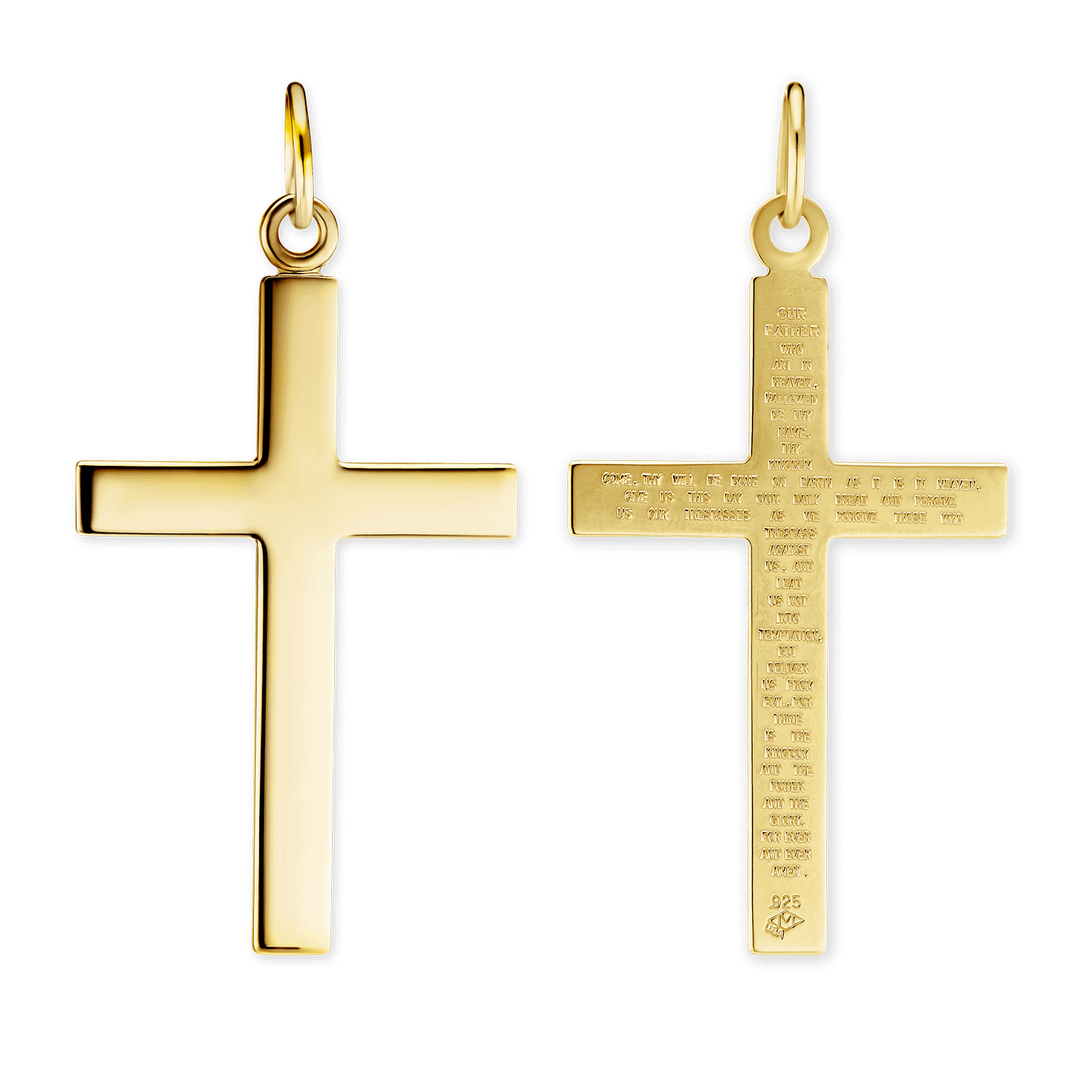 Klassischer Kreuzanhänger mit Vaterunser in 14 Karat Gelbgold