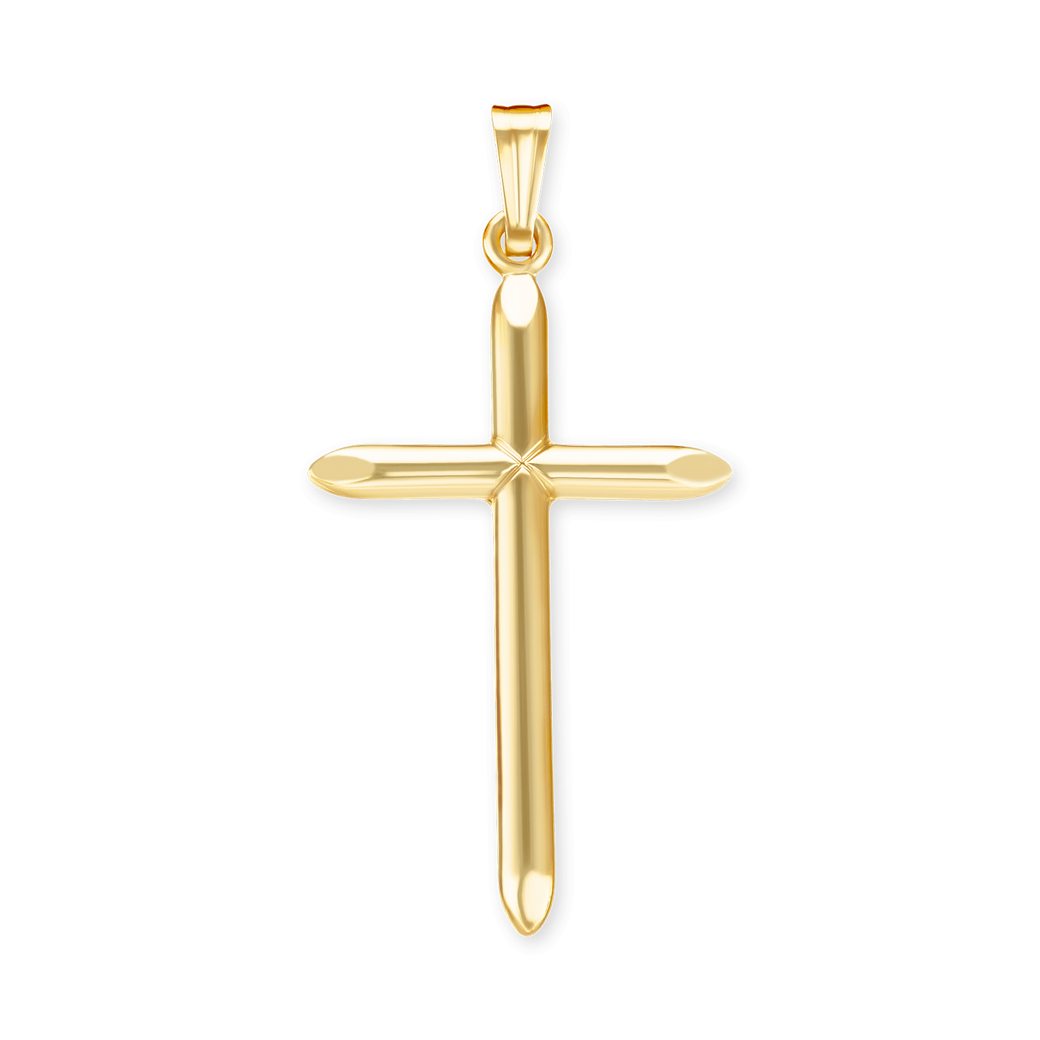 Klassischer, gewölbter Kreuzanhänger aus 14-karätigem Gelbgold – Christlicher Schmuck mit dreidimensionaler Optik