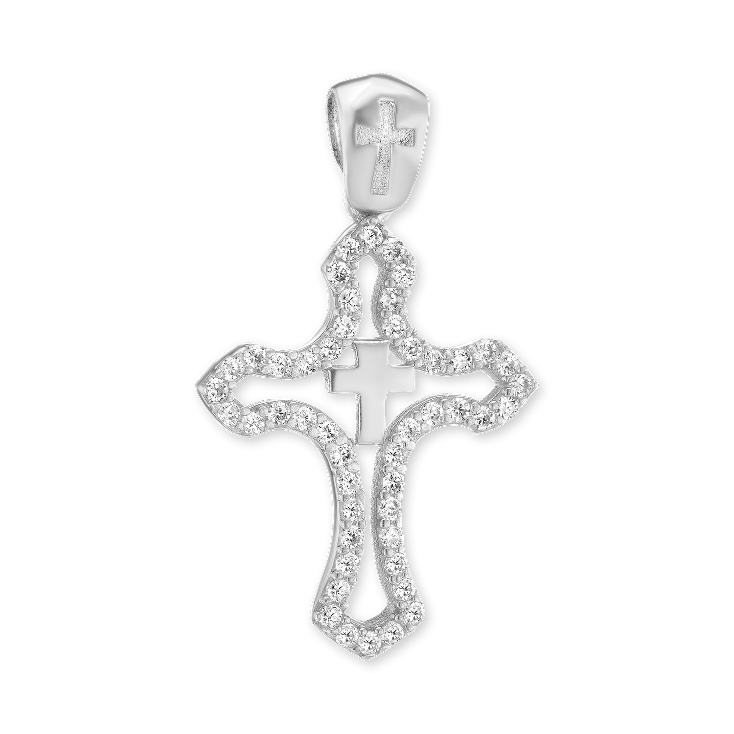 Doppelkreuzanhänger mit Zirkonia in Sterlingsilber