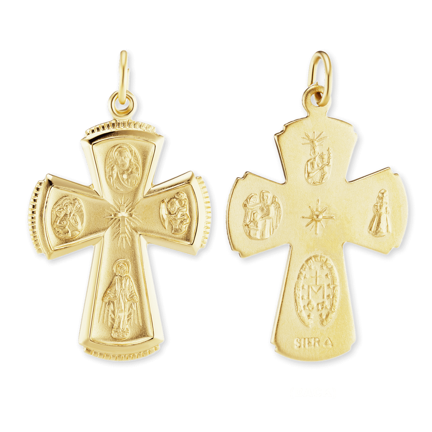 Doppelseitiger Vier-Wege-Kreuzanhänger aus Sterlingsilber