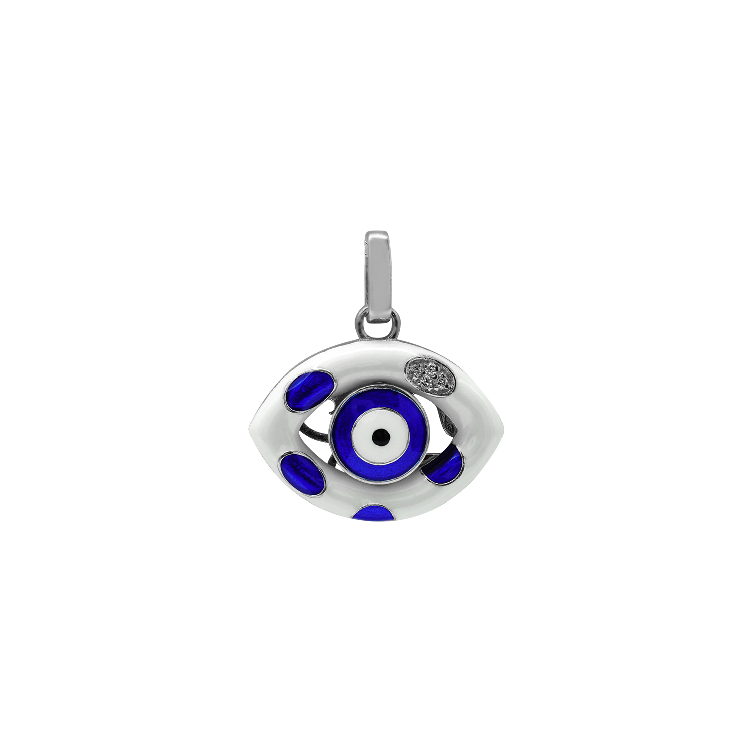 Anhänger mit bösem Blick, verziert mit dunkelblauer und weißer Emaille aus Sterlingsilber