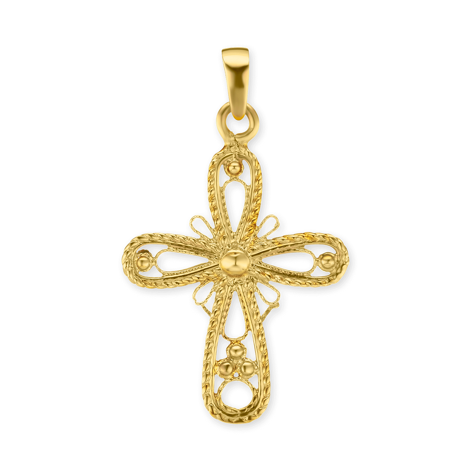 Filigraner Kreuzanhänger mit Seildetail aus 14-karätigem Gelbgold