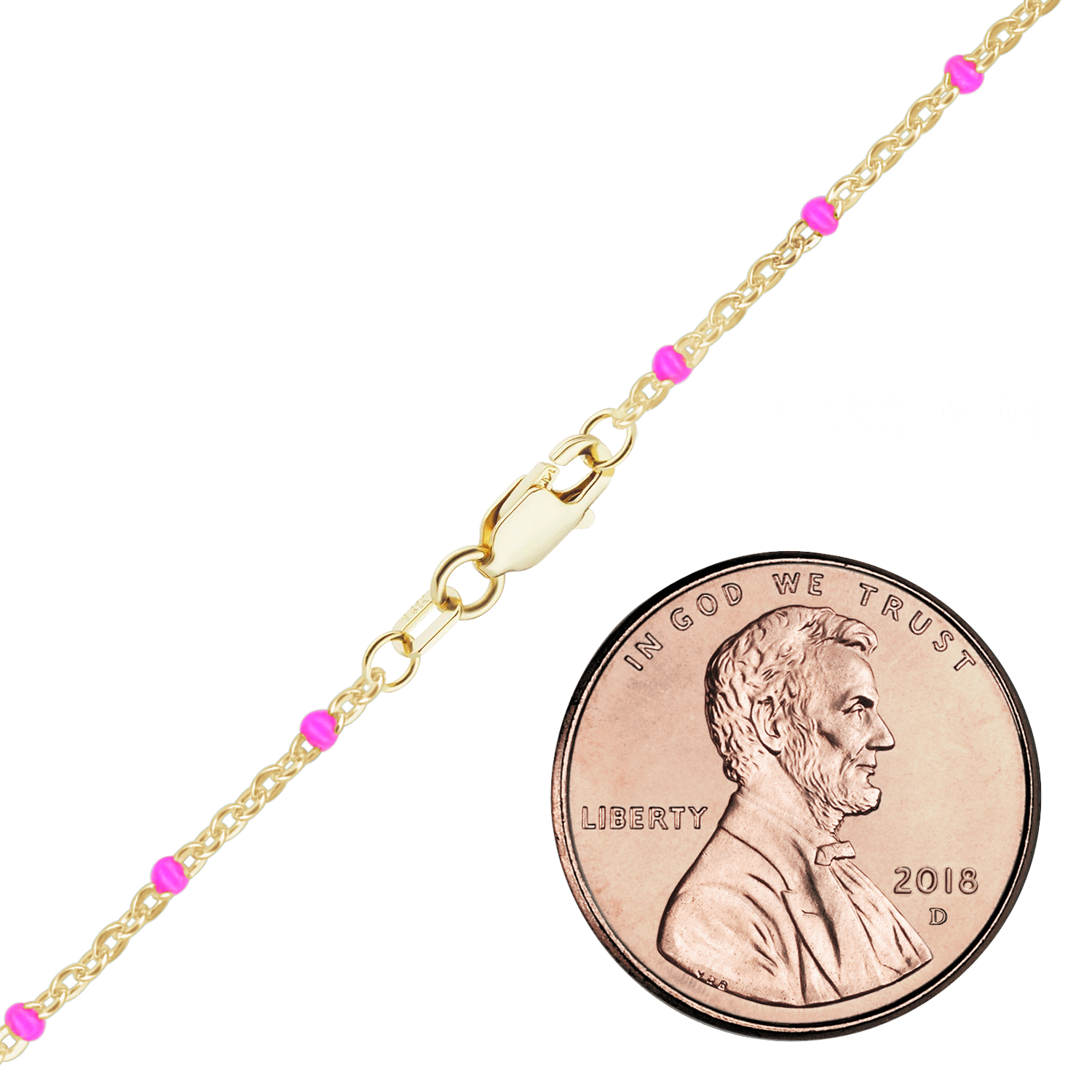 Kabelarmband mit rosafarbenen Emailleperlen aus 14-karätigem Gelbgold