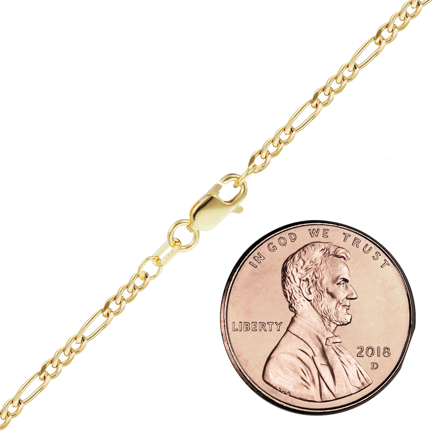 Dieses Figaro-Kettenarmband aus halbmassivem 14-karätigem Gelbgold bietet die perfekte Balance zwischen Langlebigkeit und Tragekomfort. Die halbmassive Konstruktion bewahrt die Stärke und Optik von massivem Gold und sorgt gleichzeitig für ein angenehmes Tragegefühl am Handgelenk. Damit ist es ideal für alle, die komfortablen Goldschmuck für jeden Tag bevorzugen, ohne auf Stil zu verzichten.