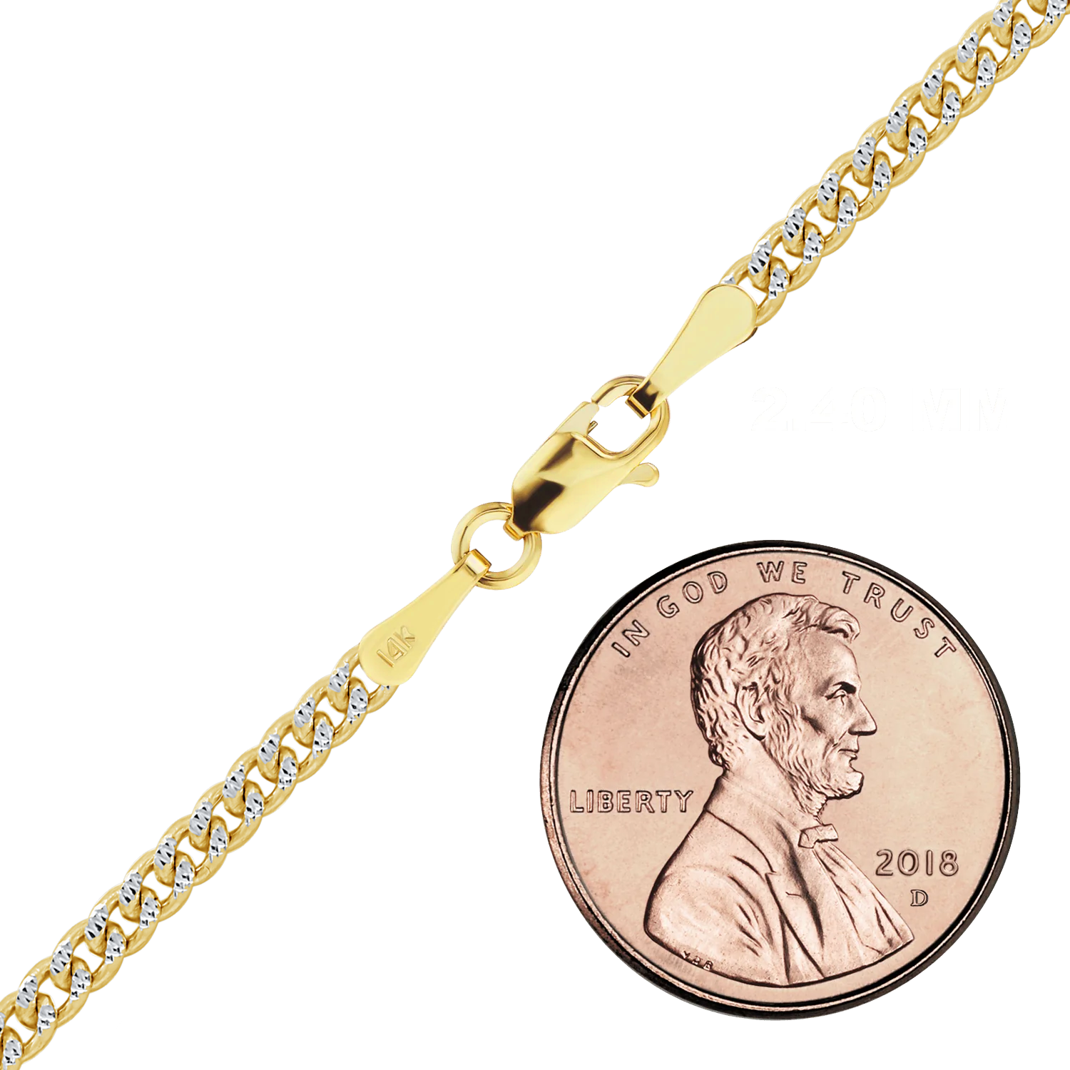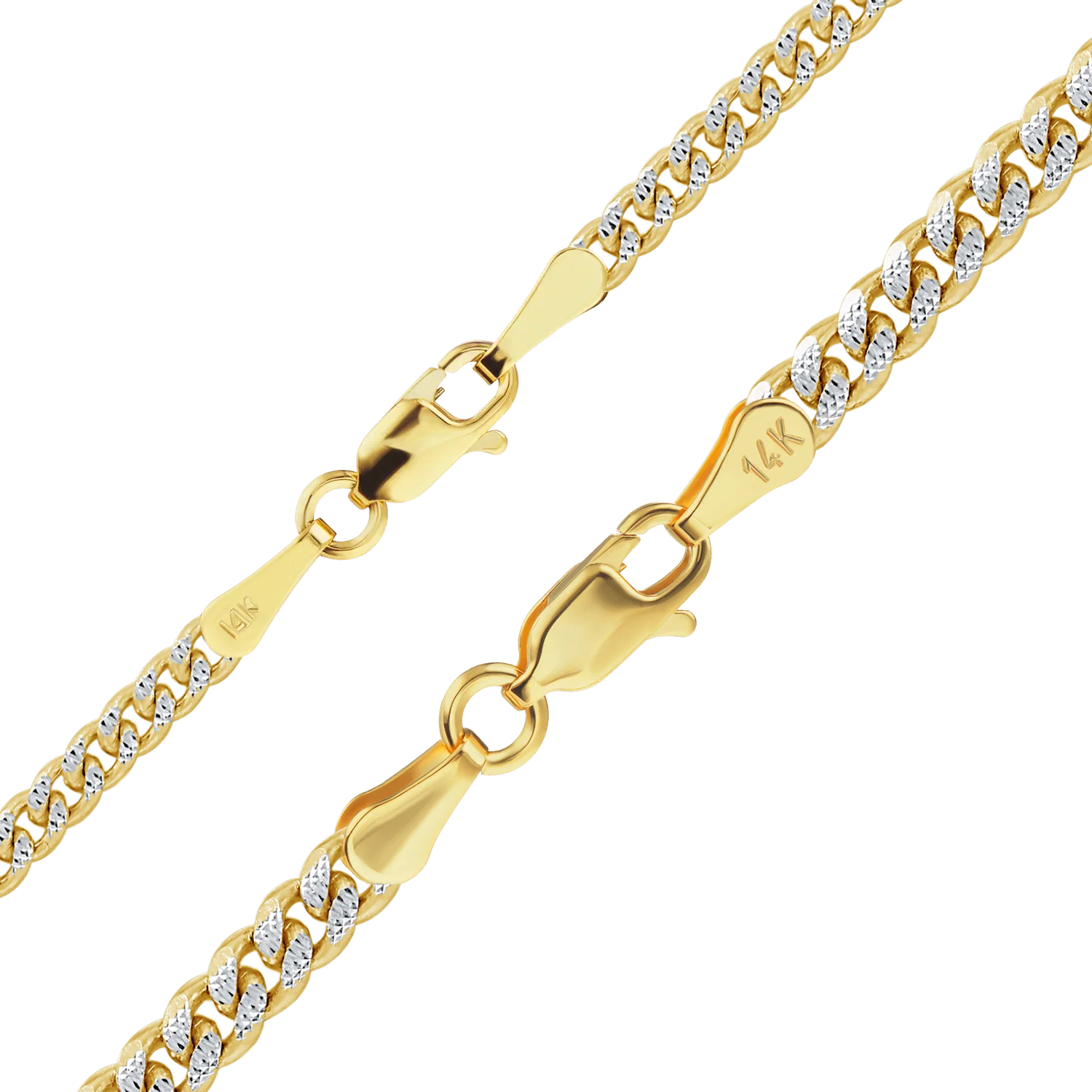 Dieses klassische Panzerarmband aus 14-karätigem Zweifarbengold besticht durch seine flachen, ineinandergreifenden Glieder in einer atemberaubenden Kombination aus Gelb- und Weißgold. Das zweifarbige Design wechselt zwischen warmen Gelbgold- und hellen Weißgoldgliedern und erzeugt so einen optischen Kontrast und eine raffinierte Eleganz, die vielseitiger einsetzbar ist als einfarbige Goldarmbänder.