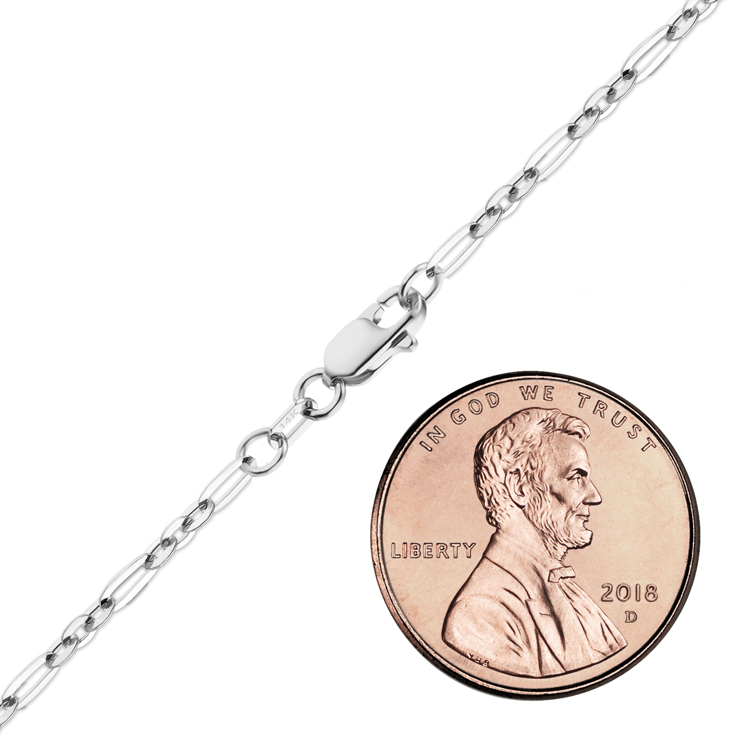 Dieses aus massivem 14-karätigem Weißgold mit Rhodium-Beschichtung gefertigte Figaro-Armband mit Diamantschliff zeugt von meisterhafter italienischer Handwerkskunst und besticht durch facettierte Glieder. Der Diamantschliff verleiht dem Armband Tiefe und Glanz, während das strahlende Weiß die Diamanten und moderne Schmuckstile perfekt ergänzt und es optisch ansprechender macht als schlichte Figaro-Armbänder.