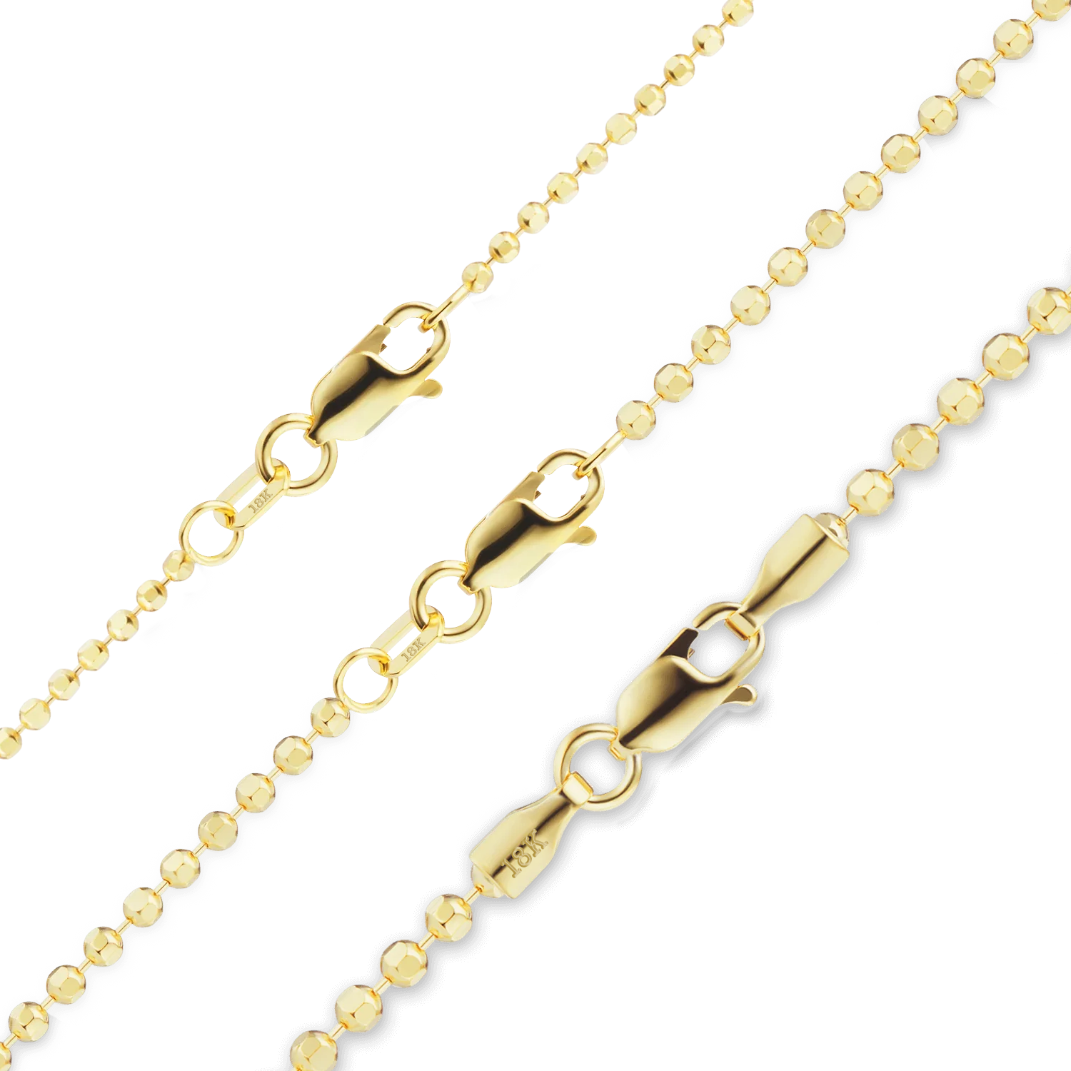 Unser Armband mit diamantgeschliffenen, runden Perlen in 18-karätigem und 14-karätigem Gelbgold verkörpert zeitlose Schönheit und meisterhafte Handwerkskunst. Ausgewogenes Gewicht und eine glatte Oberfläche sorgen für angenehmen Tragekomfort den ganzen Tag. Polierte Glieder fangen das Licht ein und verleihen dem Armband einen edlen, luxuriösen Look. Es lässt sich mühelos sowohl zu alltäglichen als auch zu eleganten Outfits kombinieren.