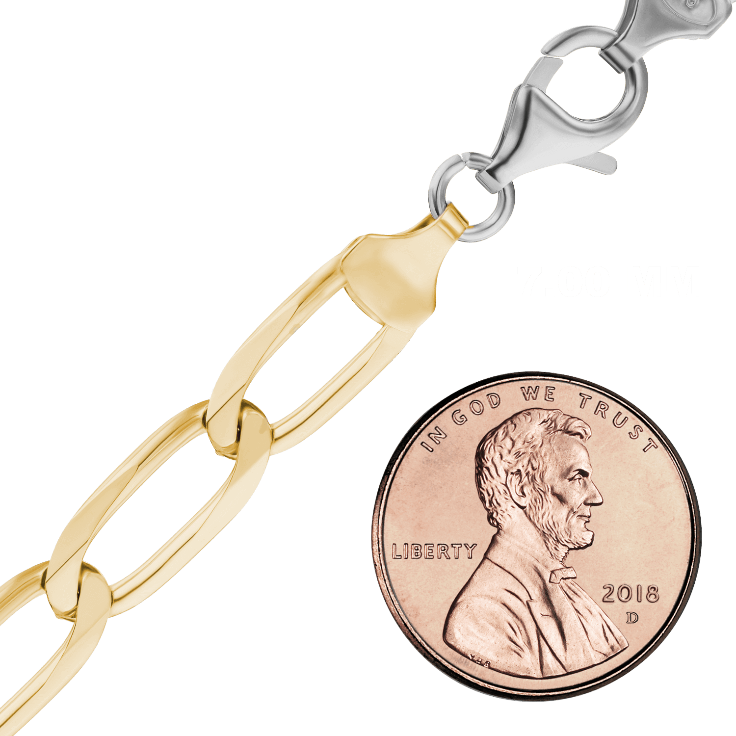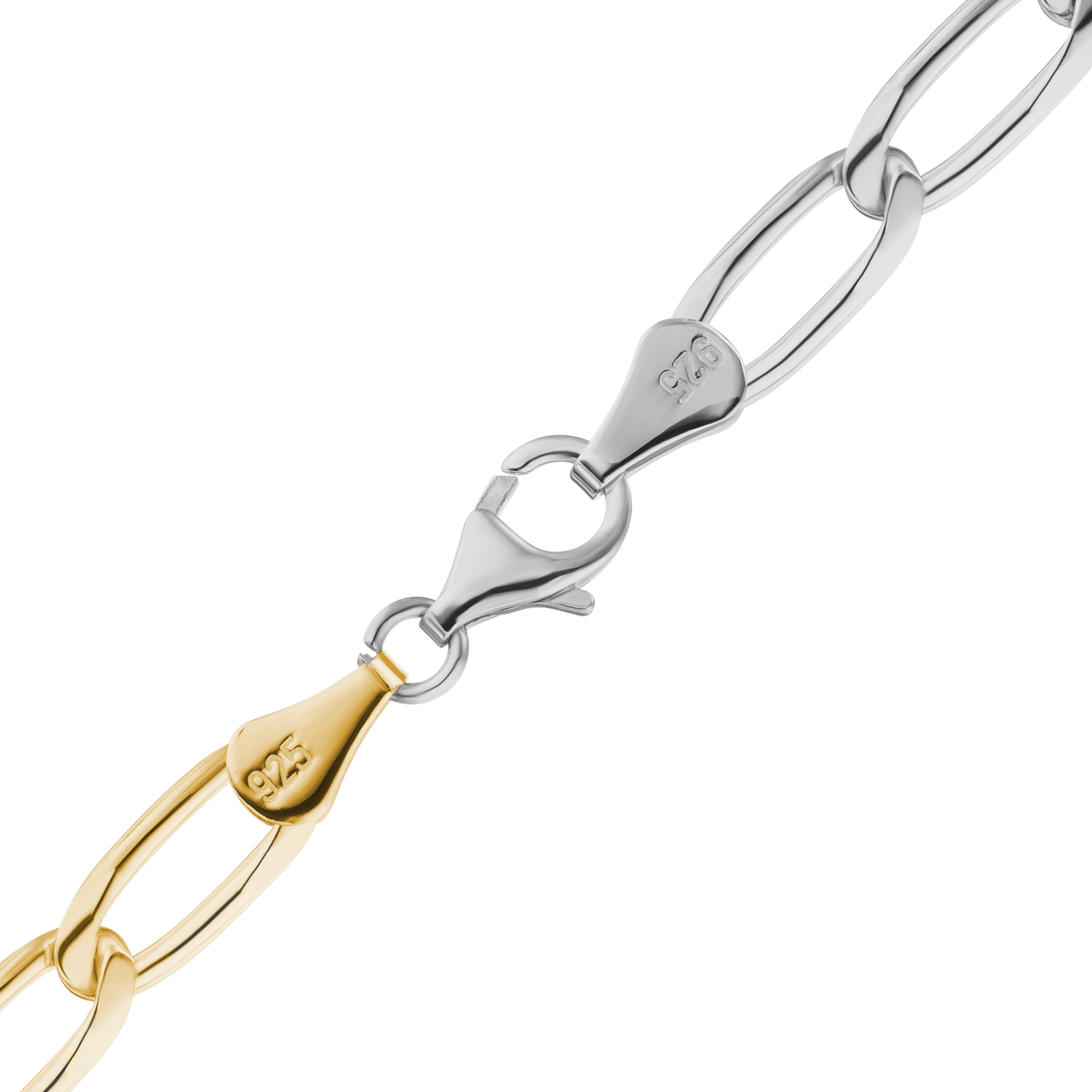 Längliches Panzerfußkettchen aus Sterlingsilber und 18-karätigem Gelbgold mit zweifarbiger Oberfläche