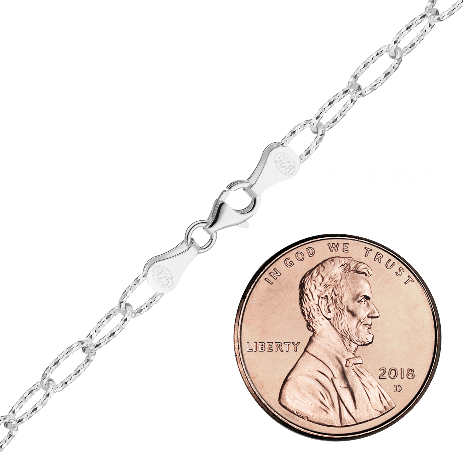 Setzen Sie ein modernes Statement mit dieser länglichen, strukturierten Kabelkette aus Sterlingsilber mit brillanter Rhodium-Beschichtung. Das moderne Schmuckstück besticht durch längliche Glieder mit dezenter Textur, die für optische Reize, zuverlässige Stabilität und raffinierte Eleganz sorgen.