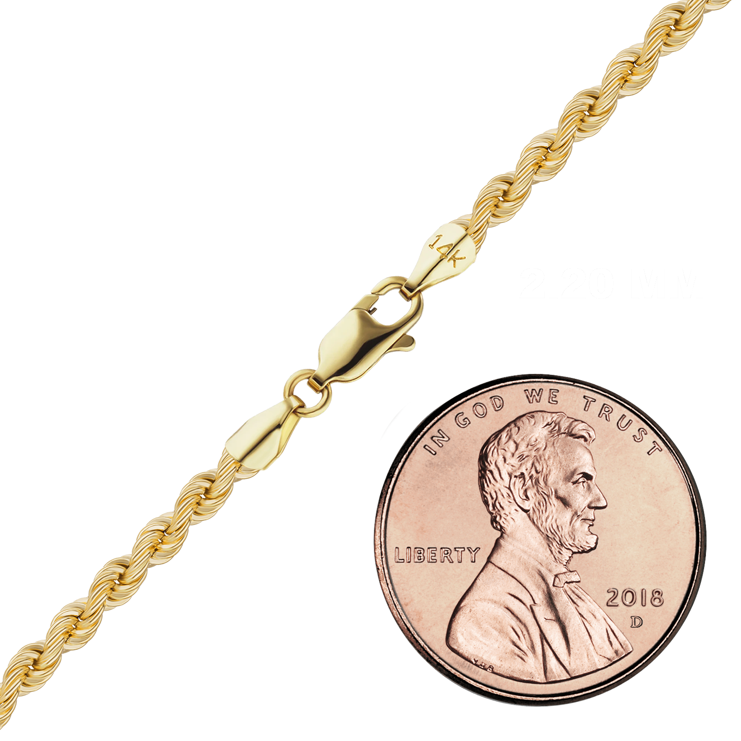 Handgefertigte, halbmassive Seilkette aus 14-karätigem Gelbgold