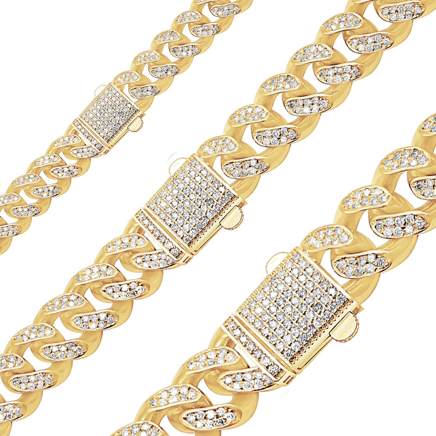 Handgefertigtes kubanisches Panzerarmband mit Diamanten in 14-karätigem Gelbgold