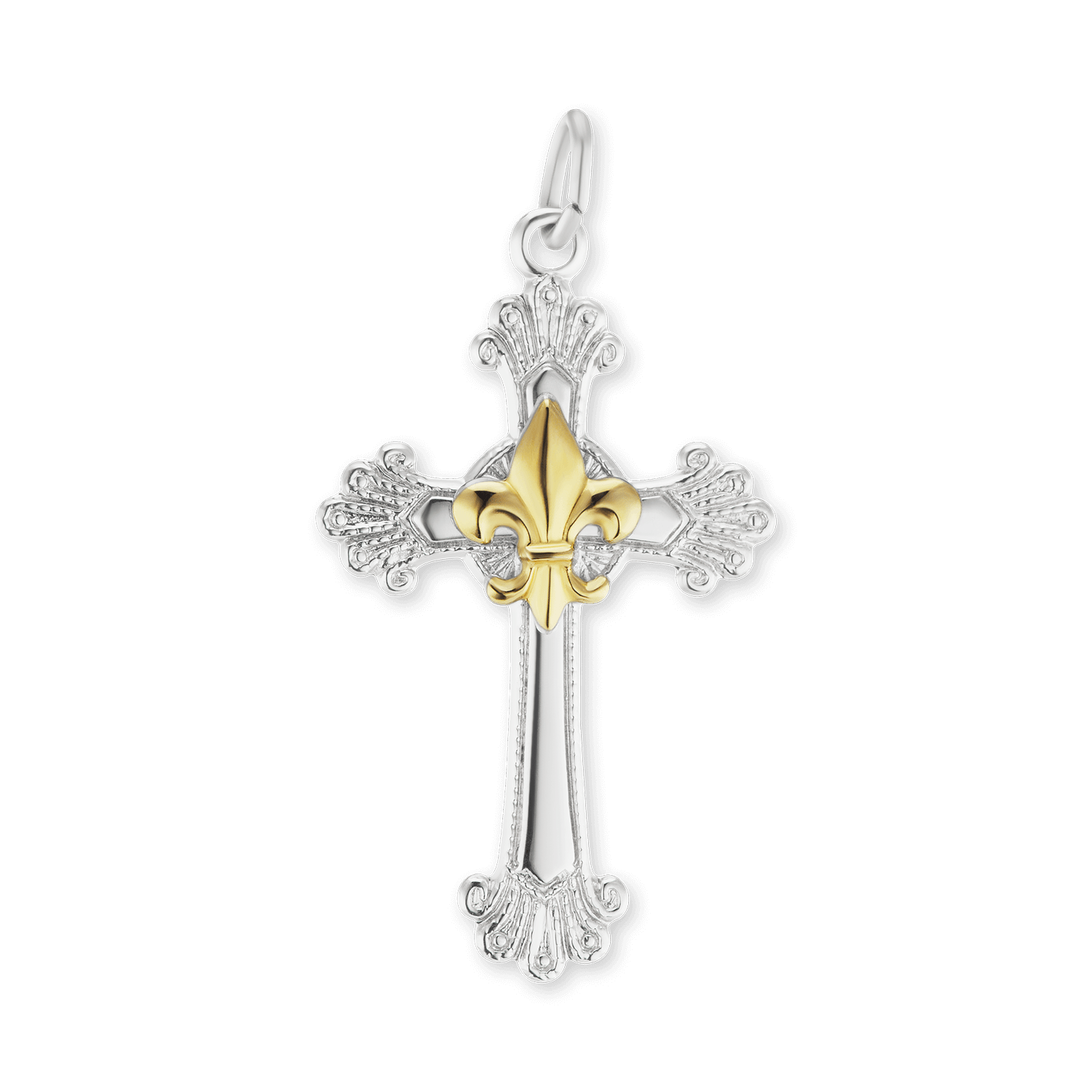 Fleur-de-Lis-Kreuz-Anhänger aus Sterlingsilber