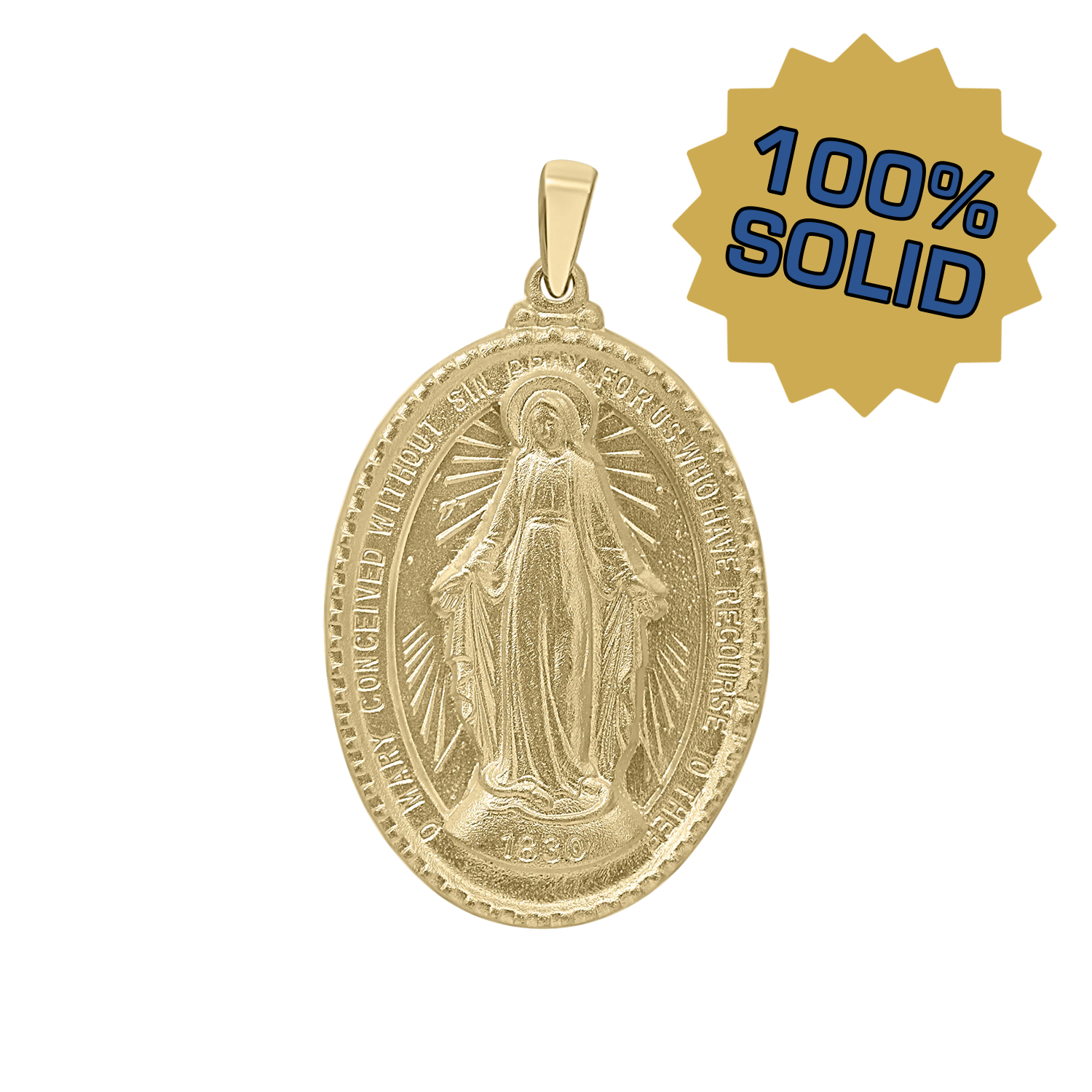 3D-ovales, gerahmtes Wundermedaillon aus 14-karätigem Gelbgold – Wundermedaille