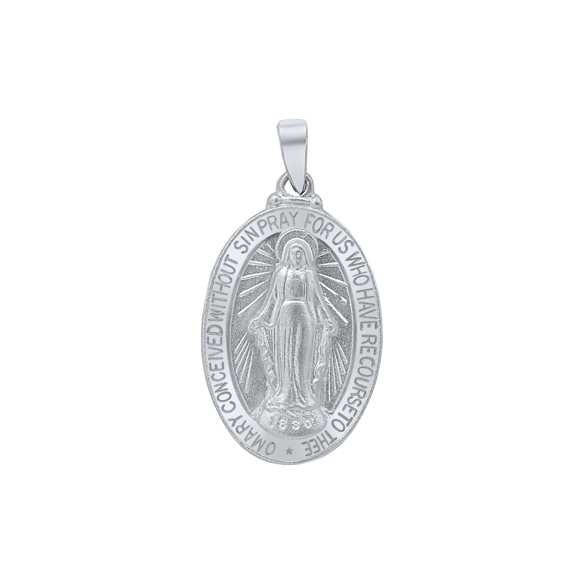 Unser ovales 3D-Medaillon aus Sterlingsilber mit gerahmter Wundermedaille ist ein heiliges katholisches Schmuckstück, das an die Marienerscheinung vor der heiligen Katharina Labouré erinnert. Der dreidimensionale, ovale Medaillonanhänger besticht durch detailreiche Mariendarstellungen in elegantem Rahmen und ist ein wertvolles Geschenk für alle, die die Wundermedaille verehren, Marias Schutz suchen oder den katholischen Glauben feiern.