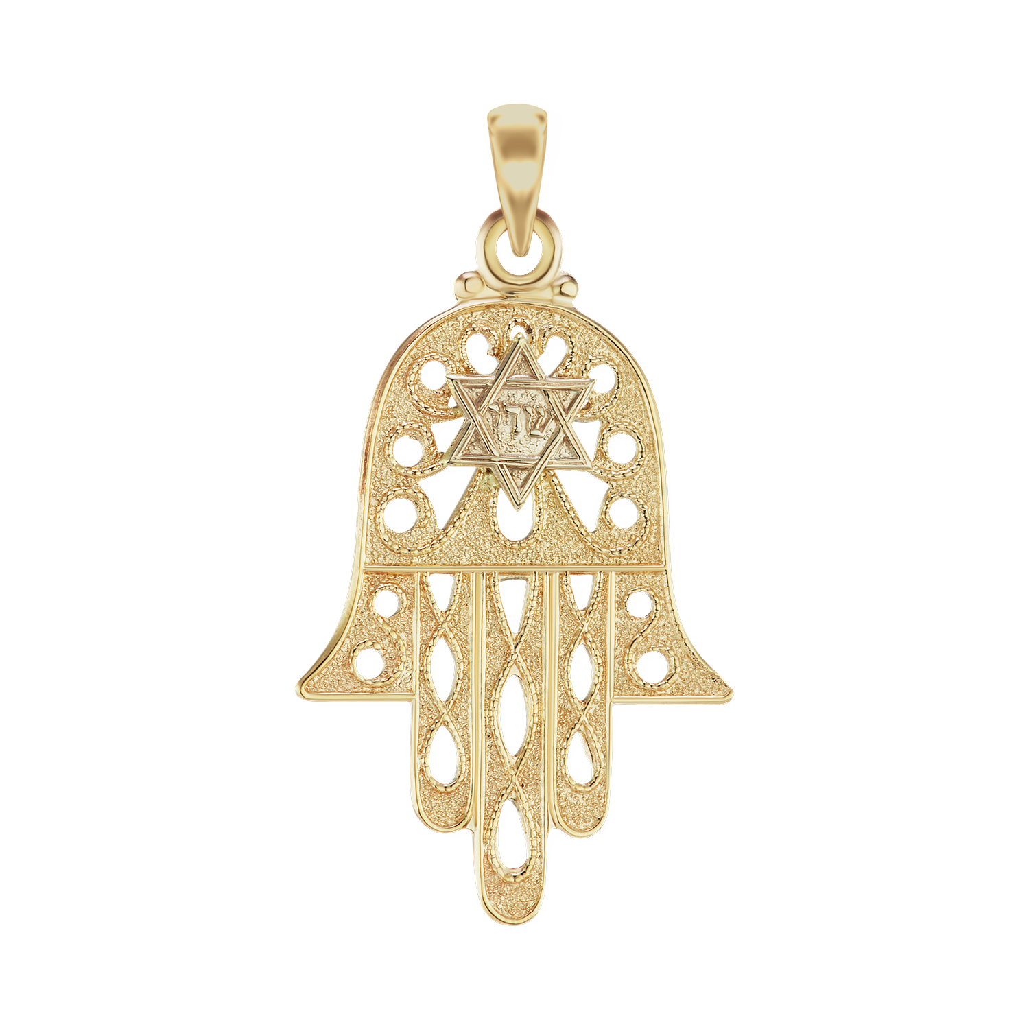 Anhänger „Hand Gottes Hamsa“ mit Davidstern aus 14-karätigem Gelbgold