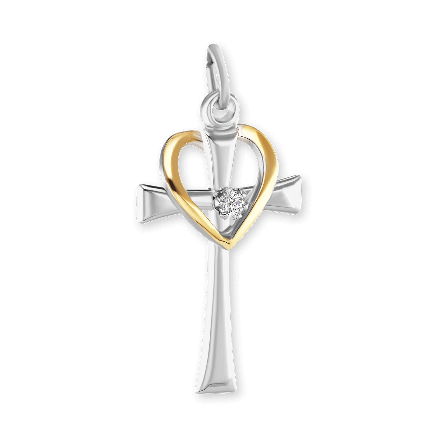 Herzförmiger Kreuzanhänger mit Zirkonia in Sterlingsilber