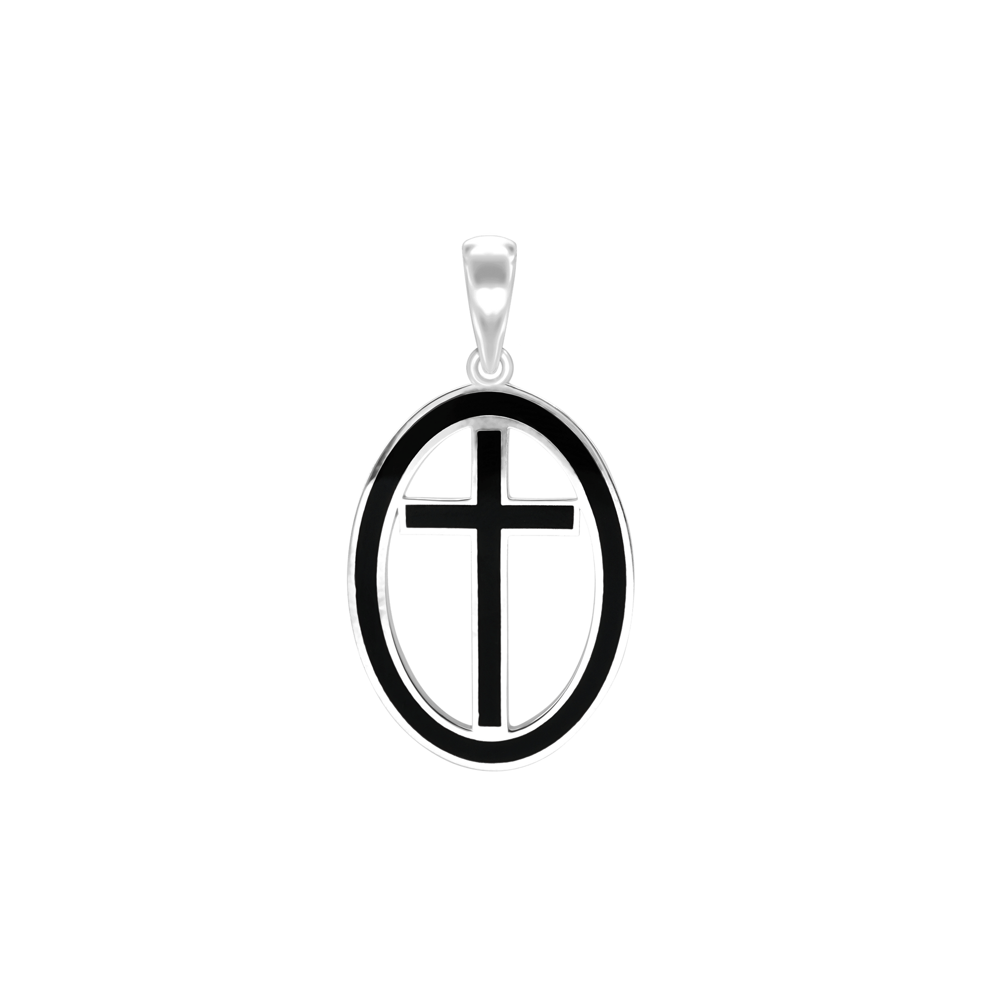 Lateinische Kreuzmedaillons mit schwarzer Emaille aus Sterlingsilber