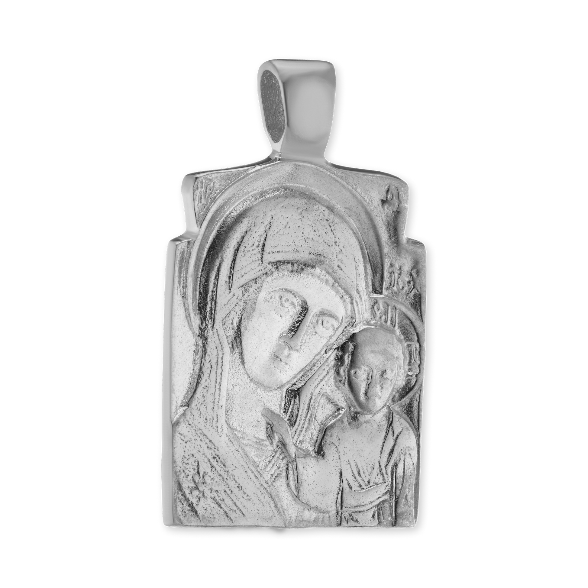 Zweifarbiger Anhänger mit Madonna und Kind sowie Medaillons aus Sterlingsilber