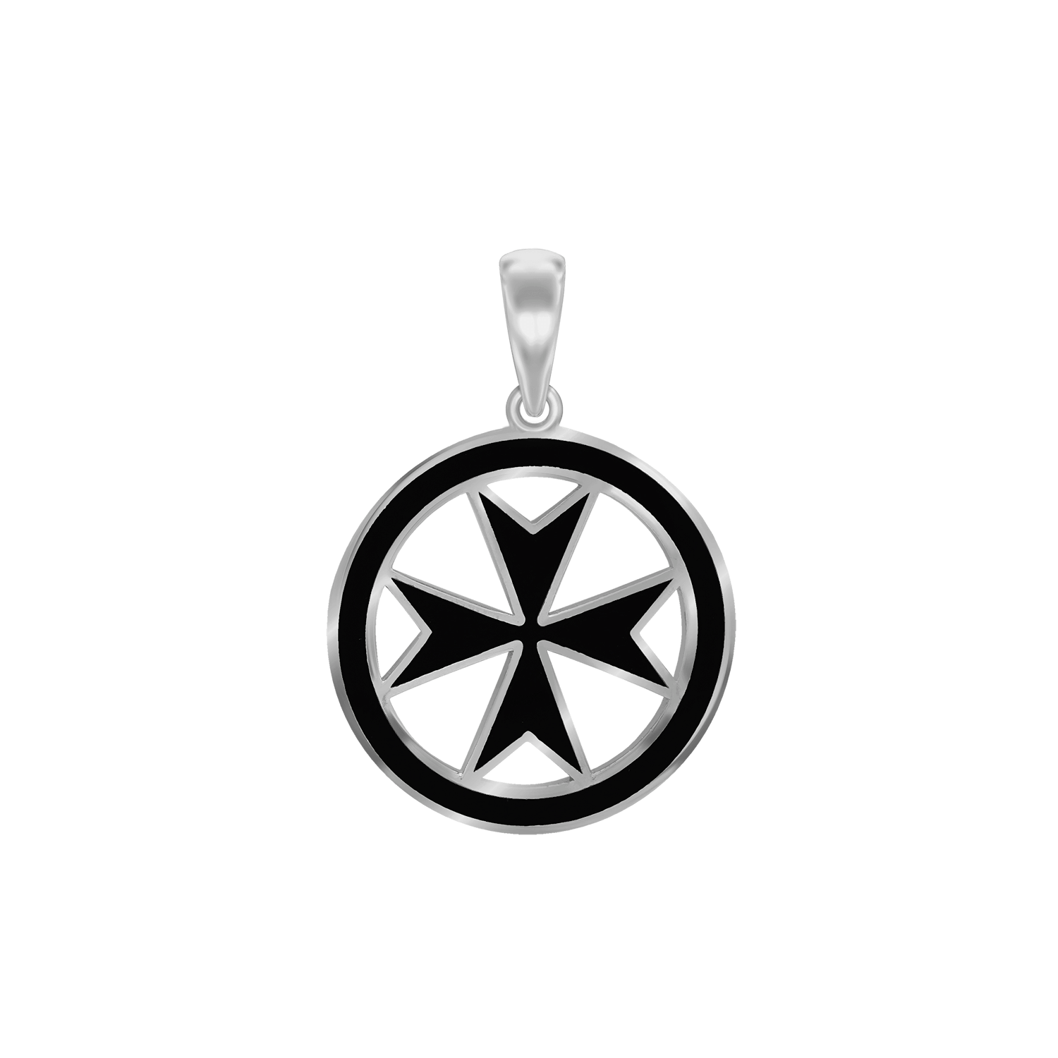 Malteserkreuz-Medaillons mit schwarzer Emaille aus Sterlingsilber