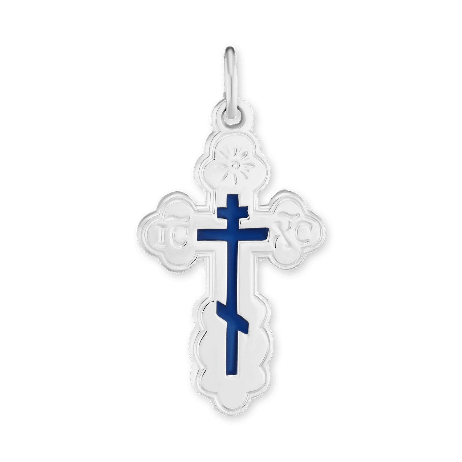 Orthodoxes Kreuz und Kruzifix-Anhänger mit blauer Emaille aus Sterlingsilber