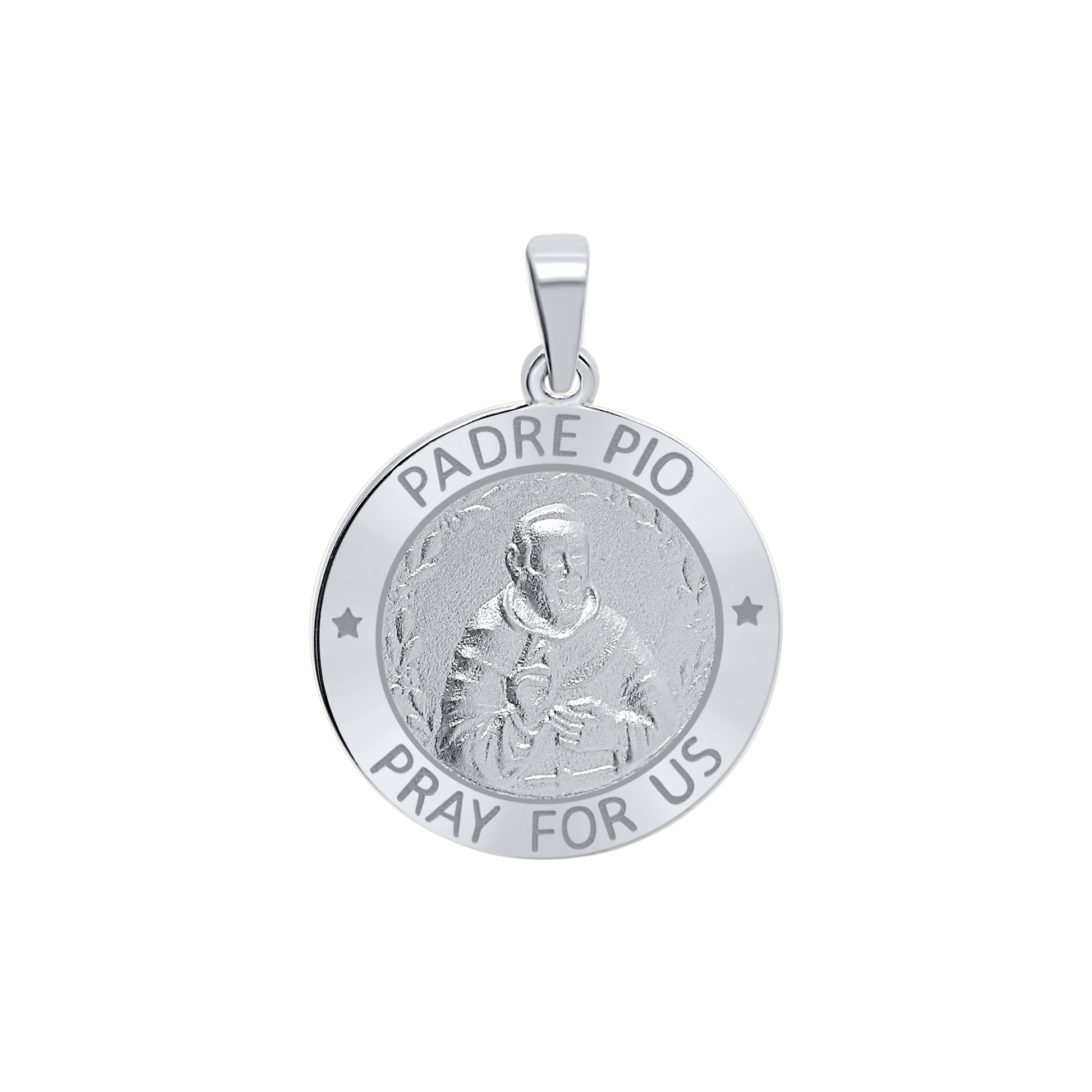 Unser Padre-Pio-Medaillon (San Pío de Pietrelcina) aus Sterlingsilber ist ein kostbares katholisches Schmuckstück zu Ehren des verehrten Stigmatisierten und Heiligen der Neuzeit. Dieser runde Medaillon-Anhänger besticht durch seine detailreiche Verarbeitung aus feinem Sterlingsilber und ist eine Hommage an Padre Pio. Er ist ein bedeutungsvolles Erbstück für alle, die Heilung suchen, beichten möchten oder diesem wundertätigen Heiligen verbunden sind.