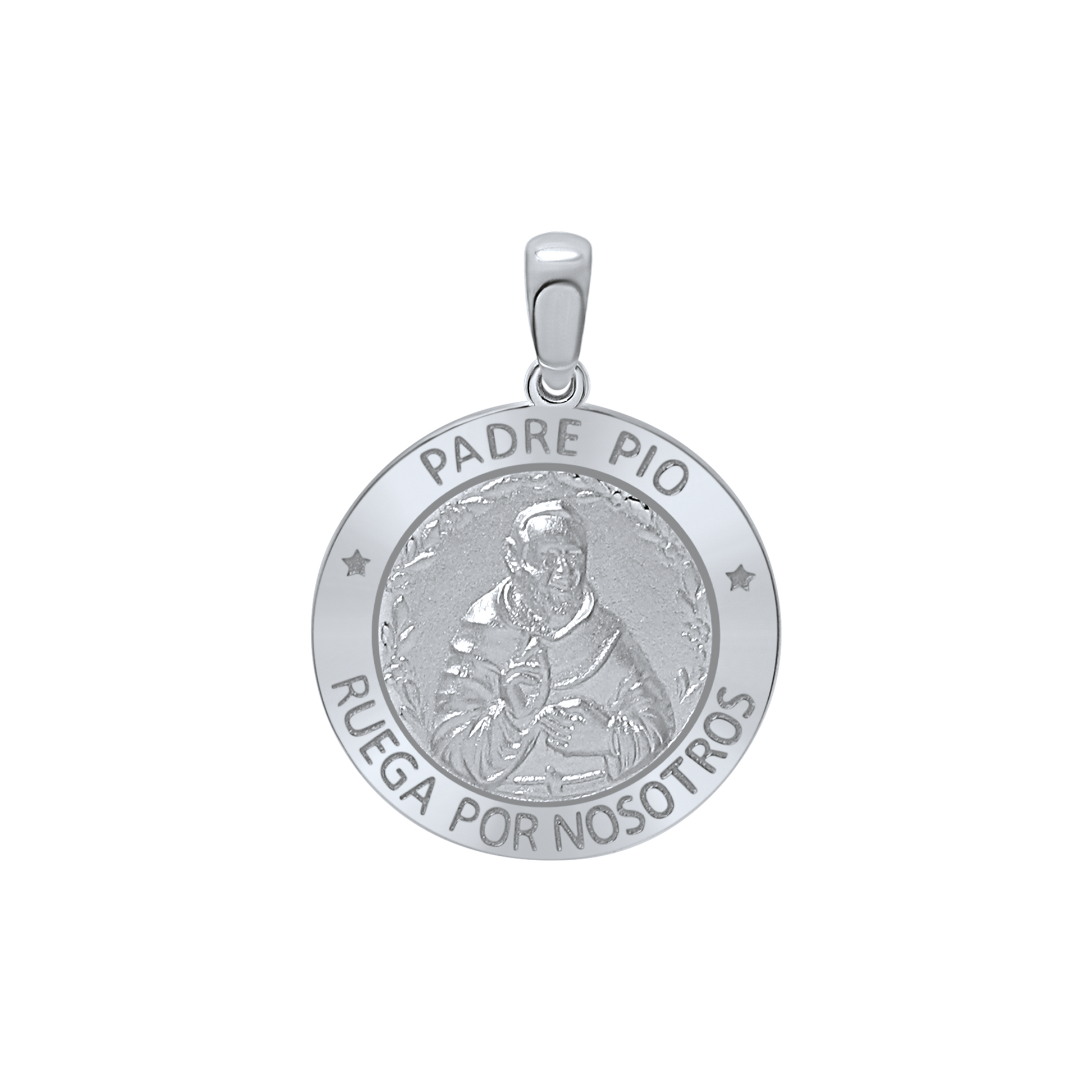 Unser Padre-Pio-Medaillon aus Sterlingsilber ist ein beliebtes katholisches Schmuckstück zu Ehren des modernen Mystikers und Stigmatisierten Pio von Pietrelcina. Dieser runde Medaillonanhänger besticht durch seine detailreiche Verarbeitung und ist eine Hommage an Padre Pio. Er ist ein wertvolles Geschenk für alle, die Heilung, spirituellen Trost oder Verehrung für diesen beliebten Heiligen des 20. Jahrhunderts suchen.