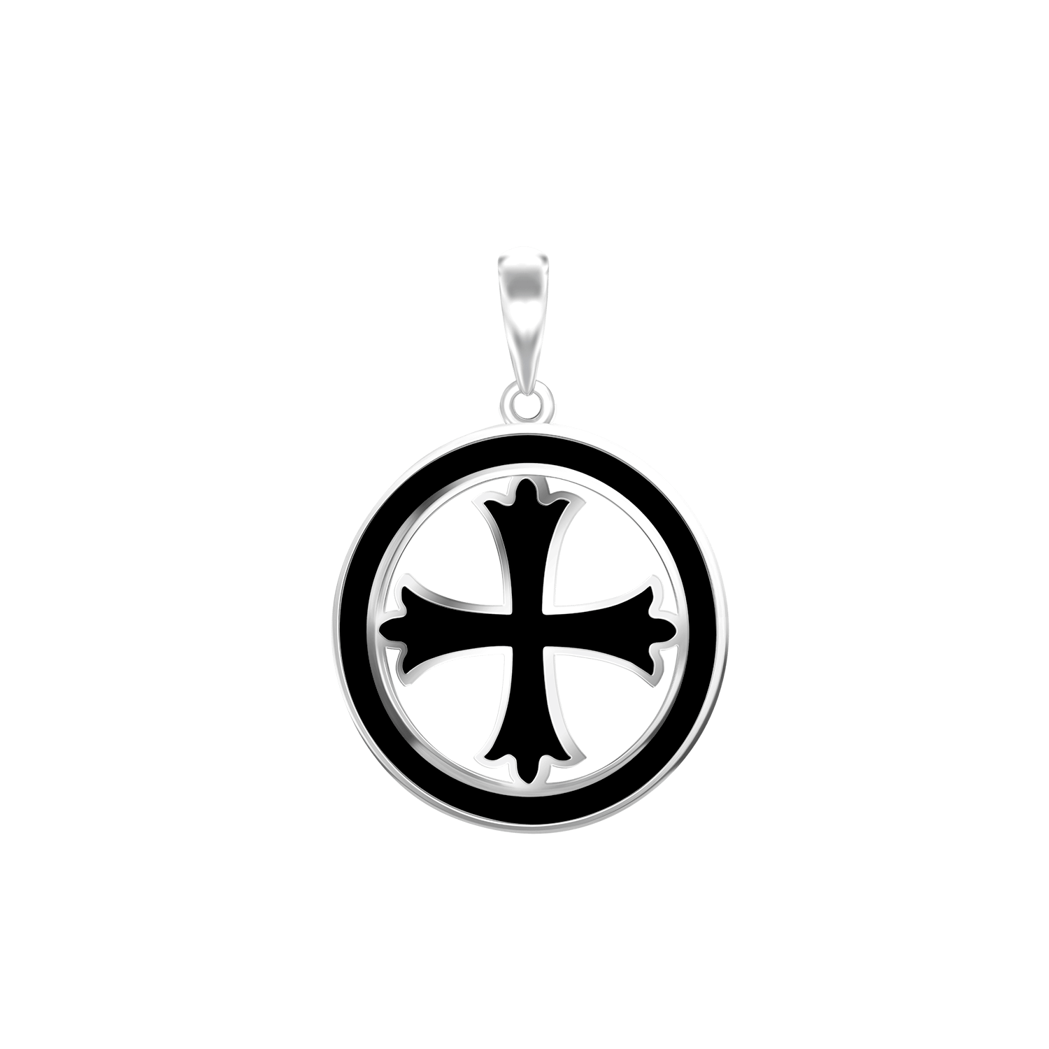 Patonce-Kreuz-Medaillons mit schwarzer Emaille aus Sterlingsilber