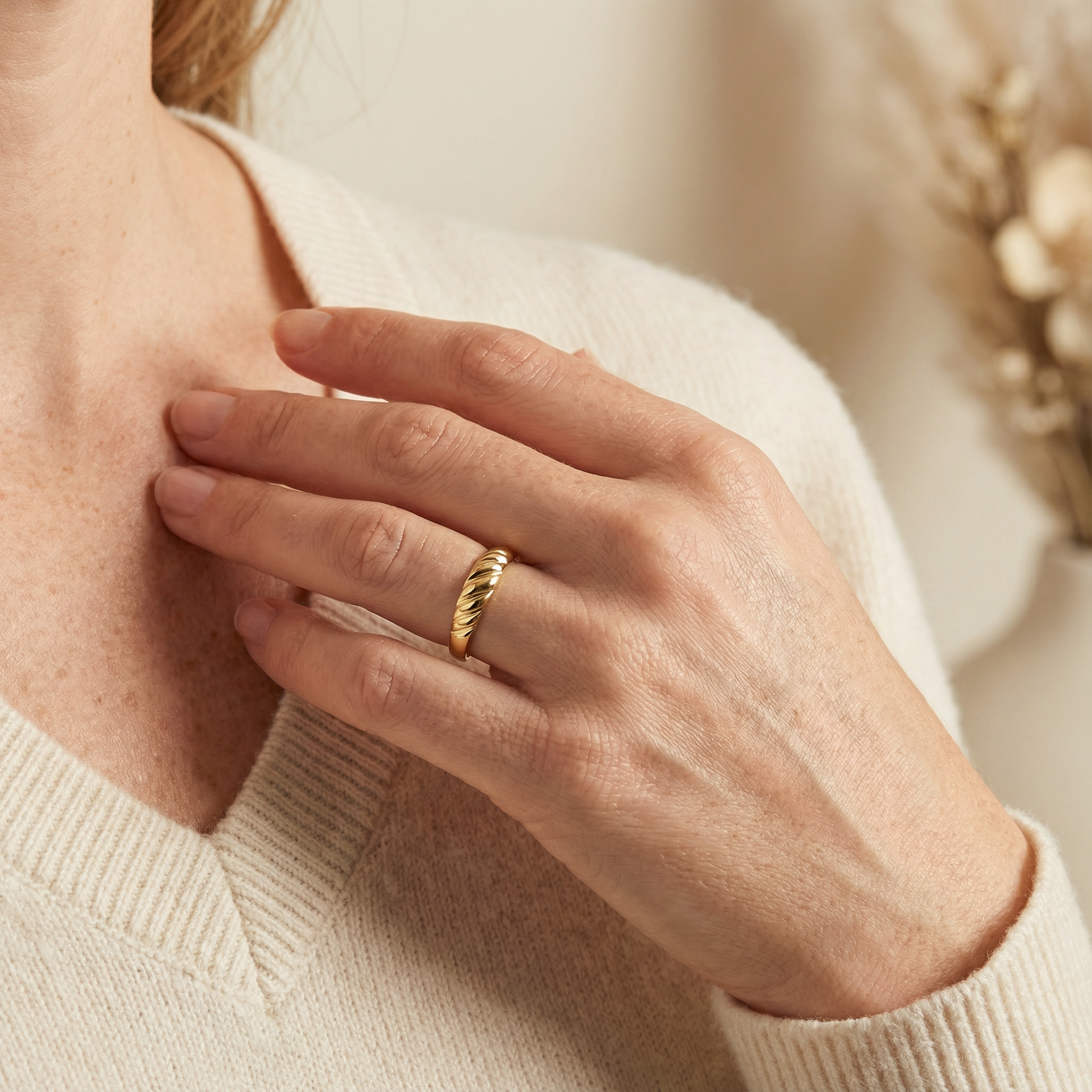 - Ein modischer Ring, der sich leicht mit anderen Ringen kombinieren lässt oder als einzelnes Schmuckstück für sich allein stehen kann.