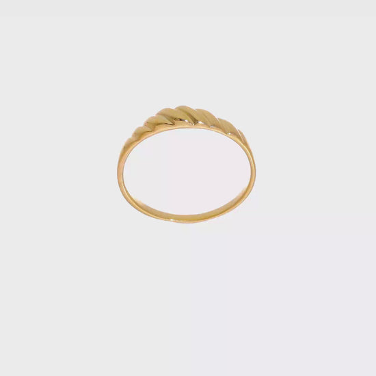 Unser Polished Valley Dome Ring vereint ein glattes Kuppelprofil mit einer sanft geschnitzten Talstruktur und schafft so einen raffinierten Look, der sich mühelos für den Alltag eignet.
